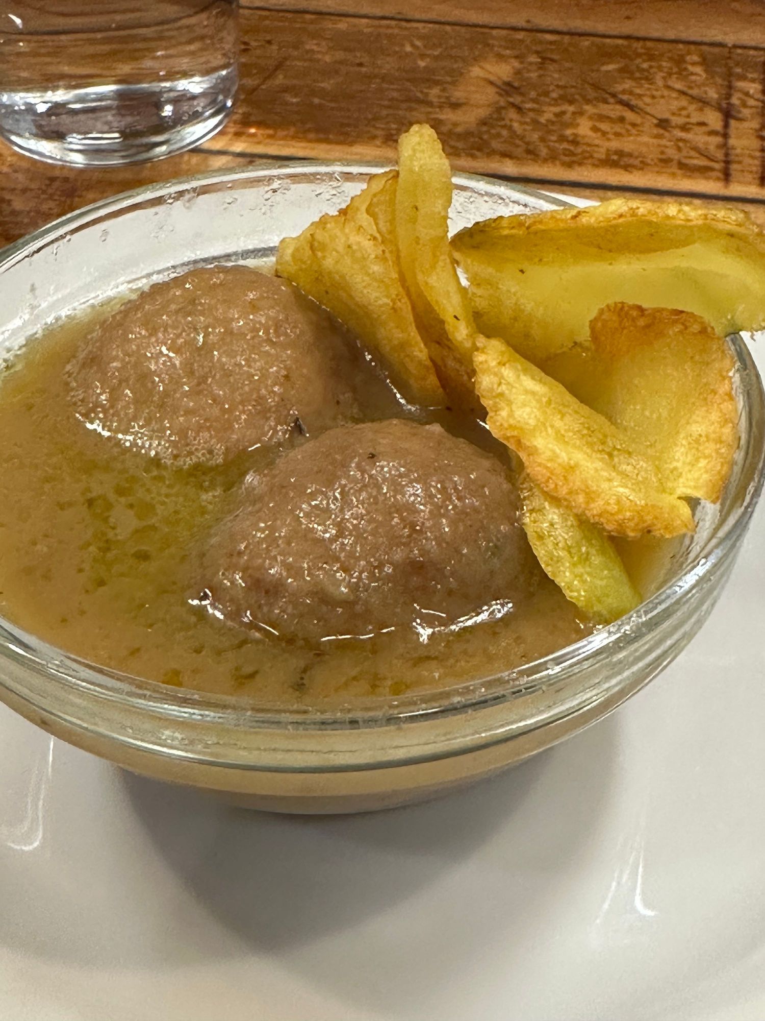 Delectable meatballs made from chicken...with good potatoes in lovely gravy.....