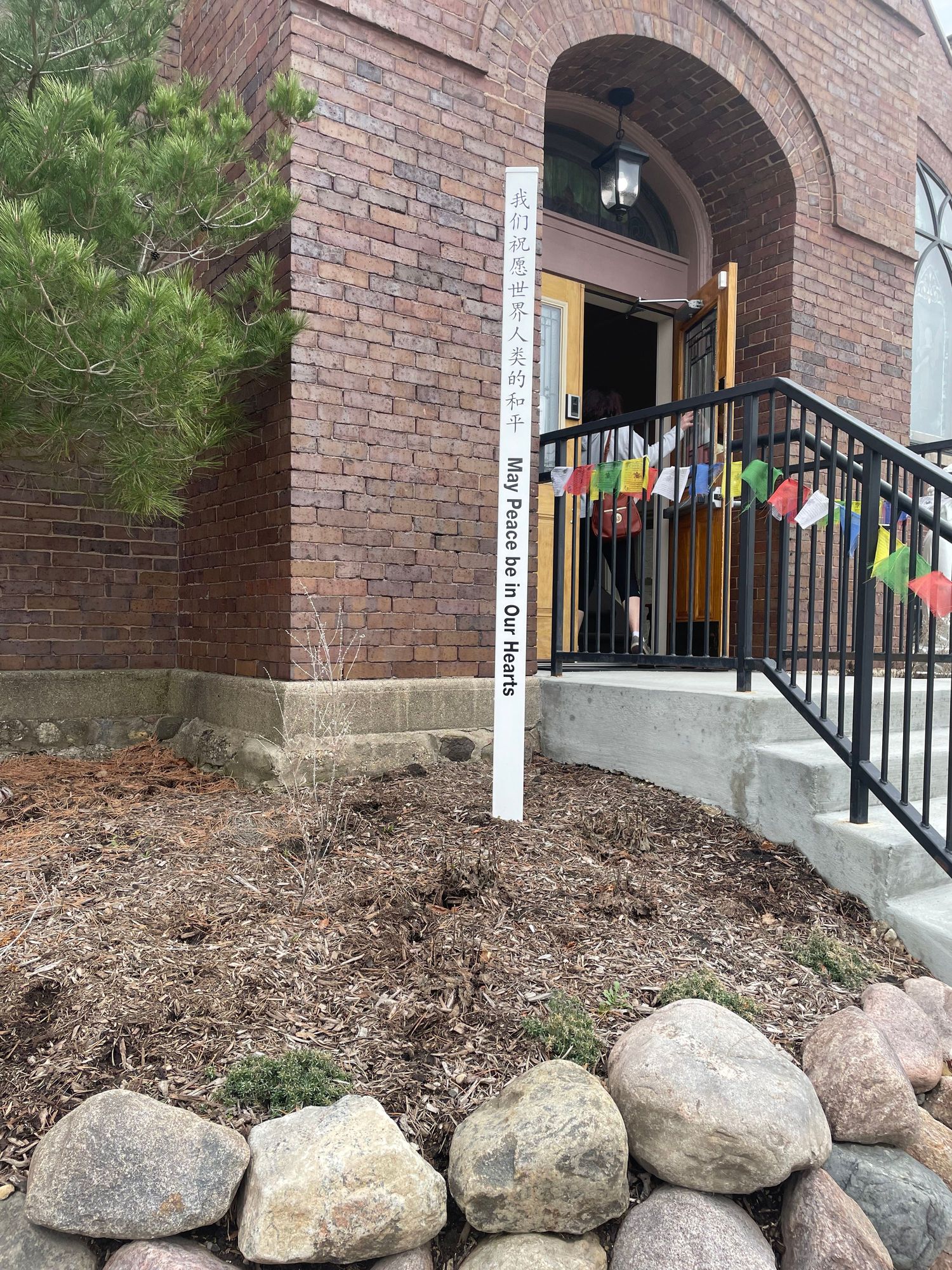 Entrance to the Temple. There were Buddha statues outside but I liked the white post.