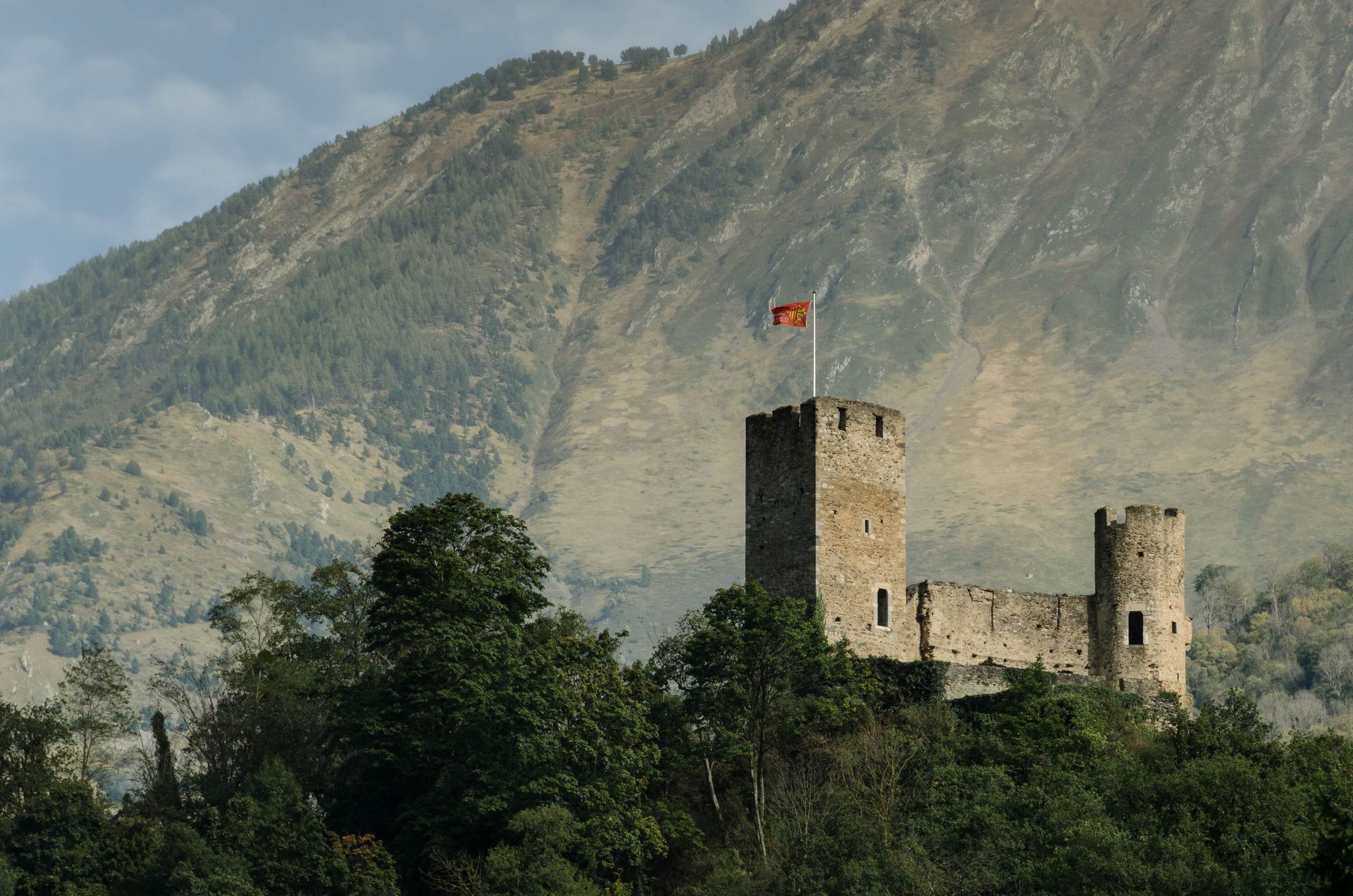 Moments after we arrived. The view of 12C Sainte-Marie castle from our large backyard. It was VERY windy that day.