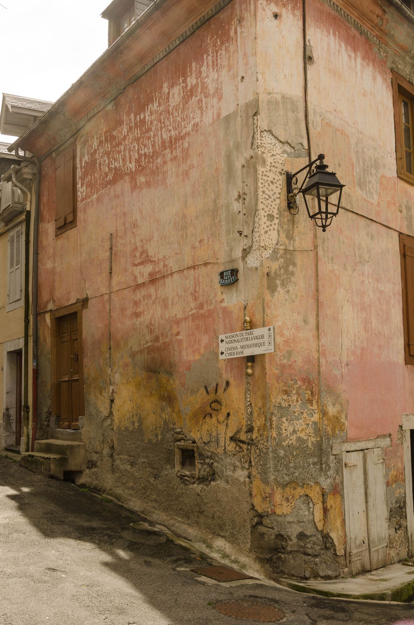 One block over from the market there was this corner with a gnarly surface. it contrasted with the otherwise well-kept facades elsewhere in Luz. One of the town's seven historic lavoirs was close by.