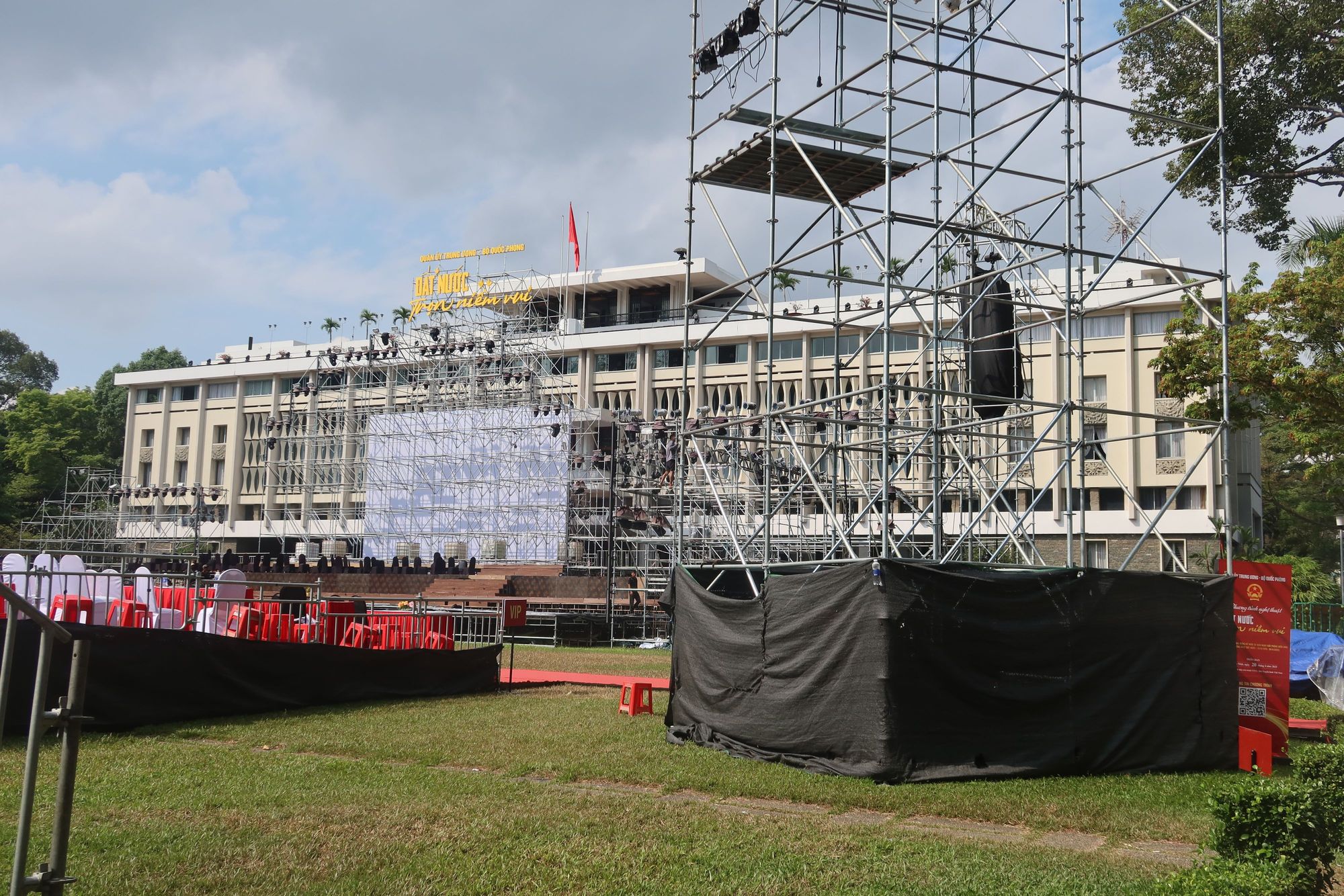 Independence Palace with staging for the 50th anniversary events