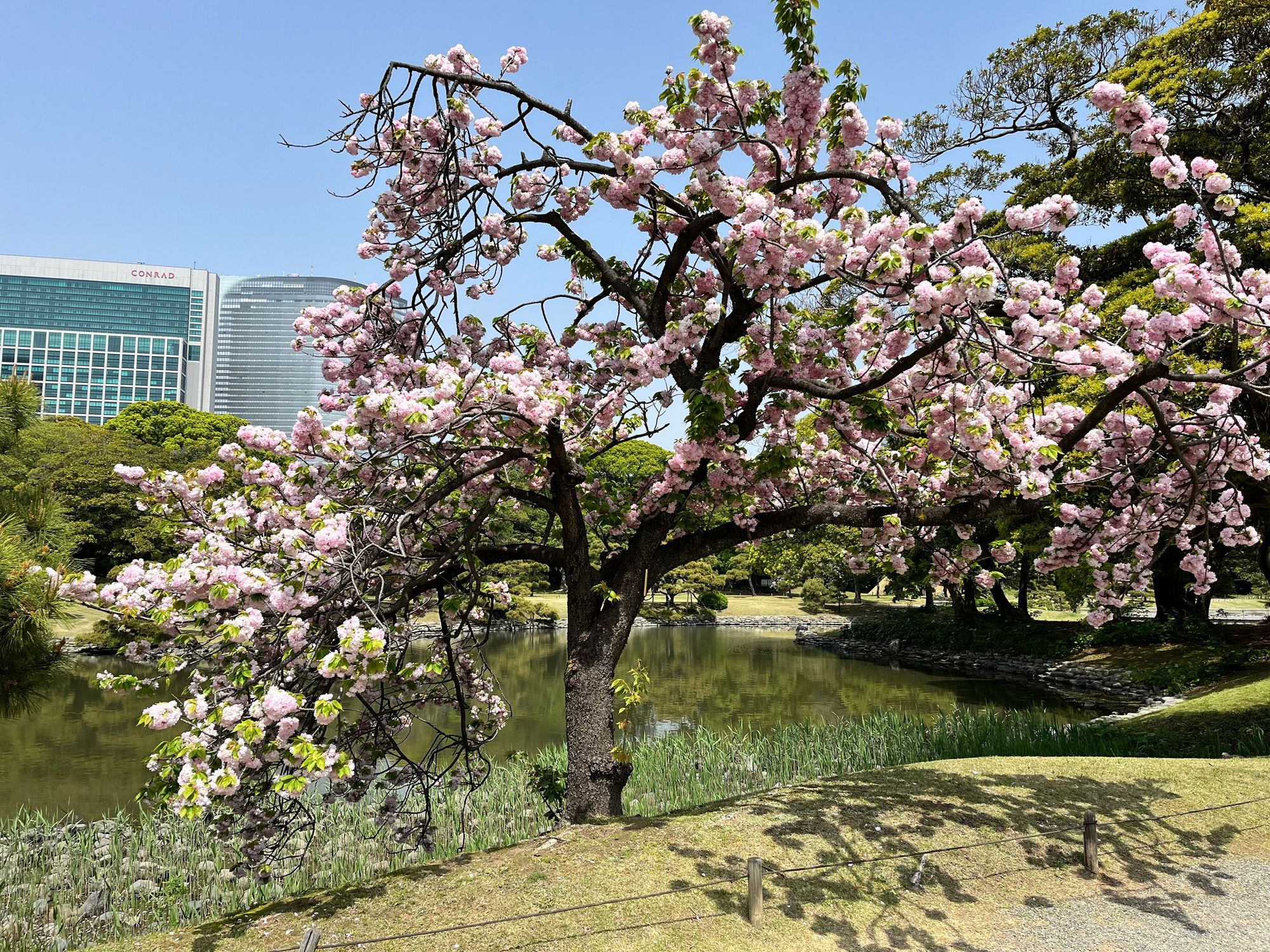 Found some late-blooming cherry blossoms at Hama-rikyu garden