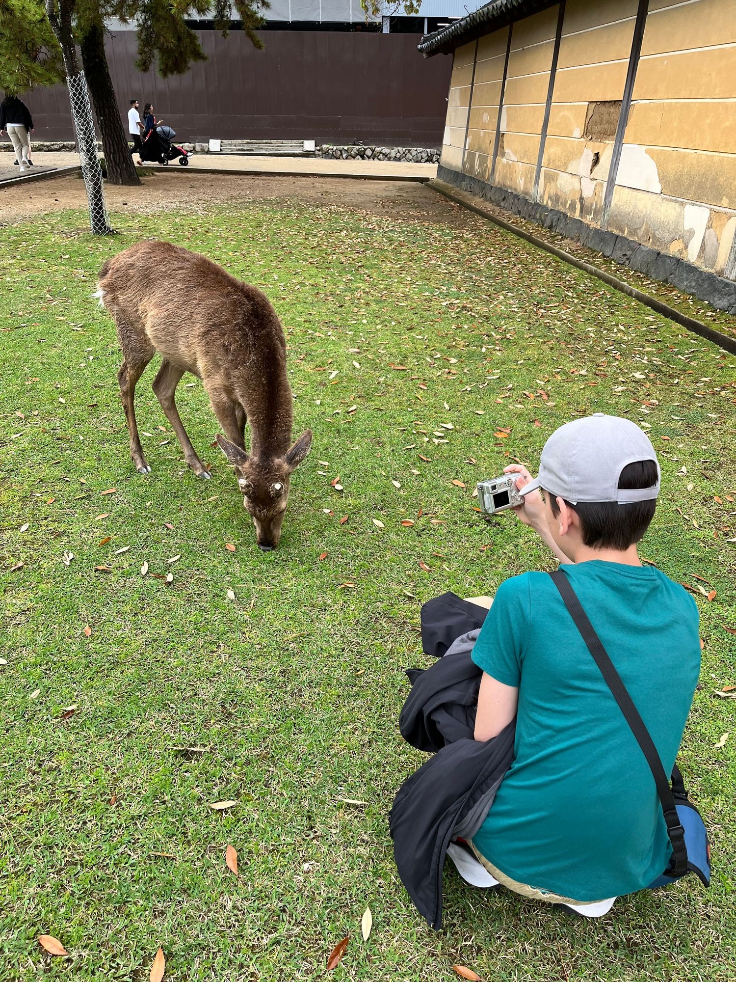My son photographing a deer