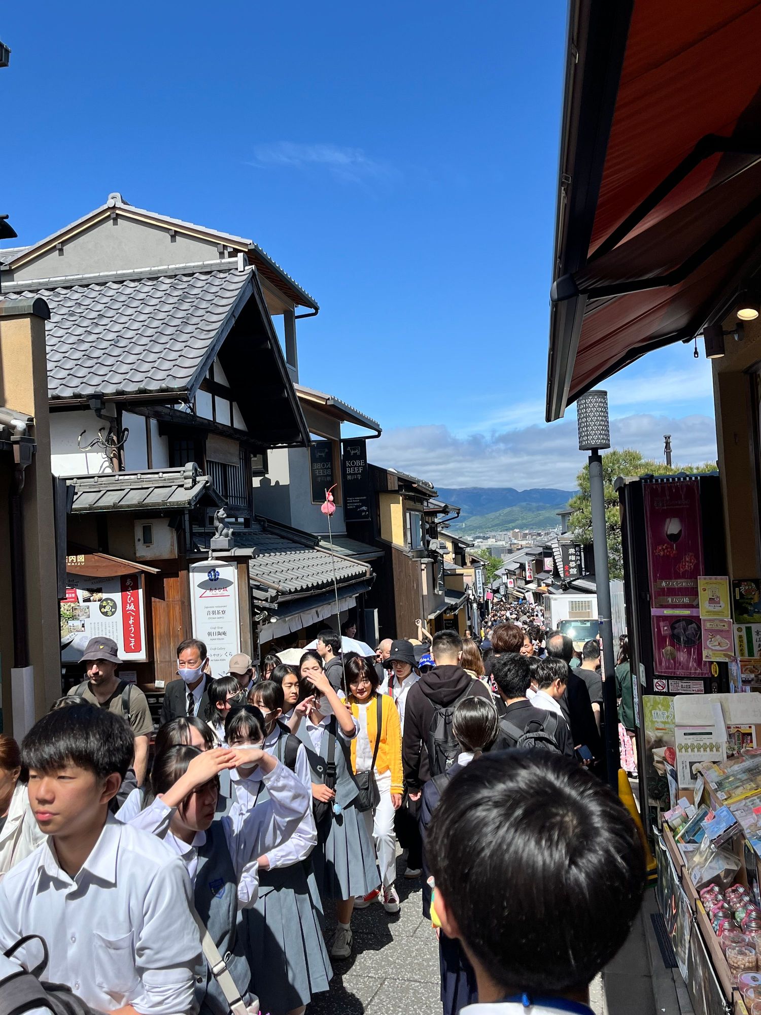 Kiyomizu zaka, the Main Street leading up to Kiyomizu -dera, packed with tourists at 10am