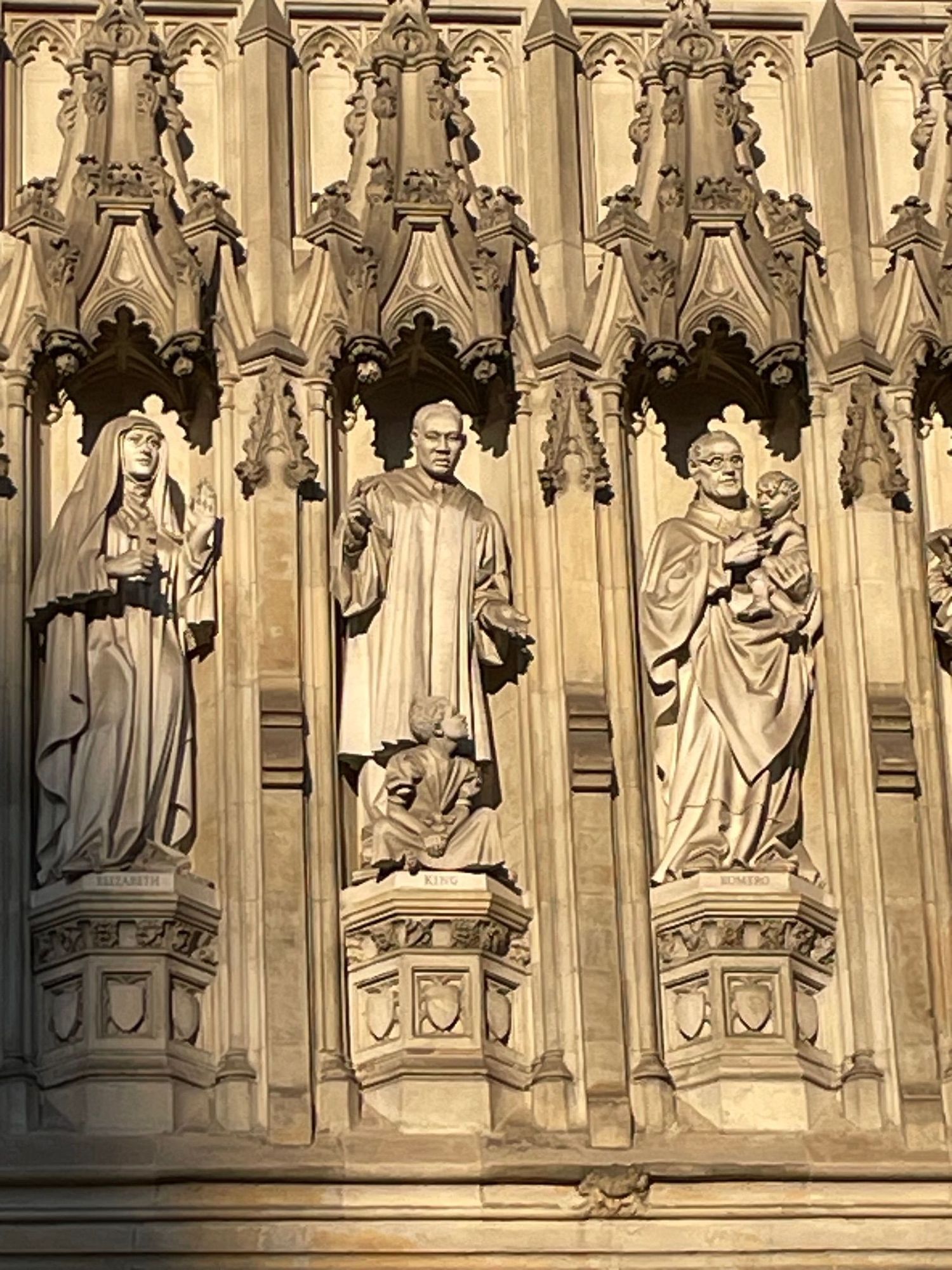 The person depicted in the middle of this frieze is Martin Luther King, I am not fibbing.