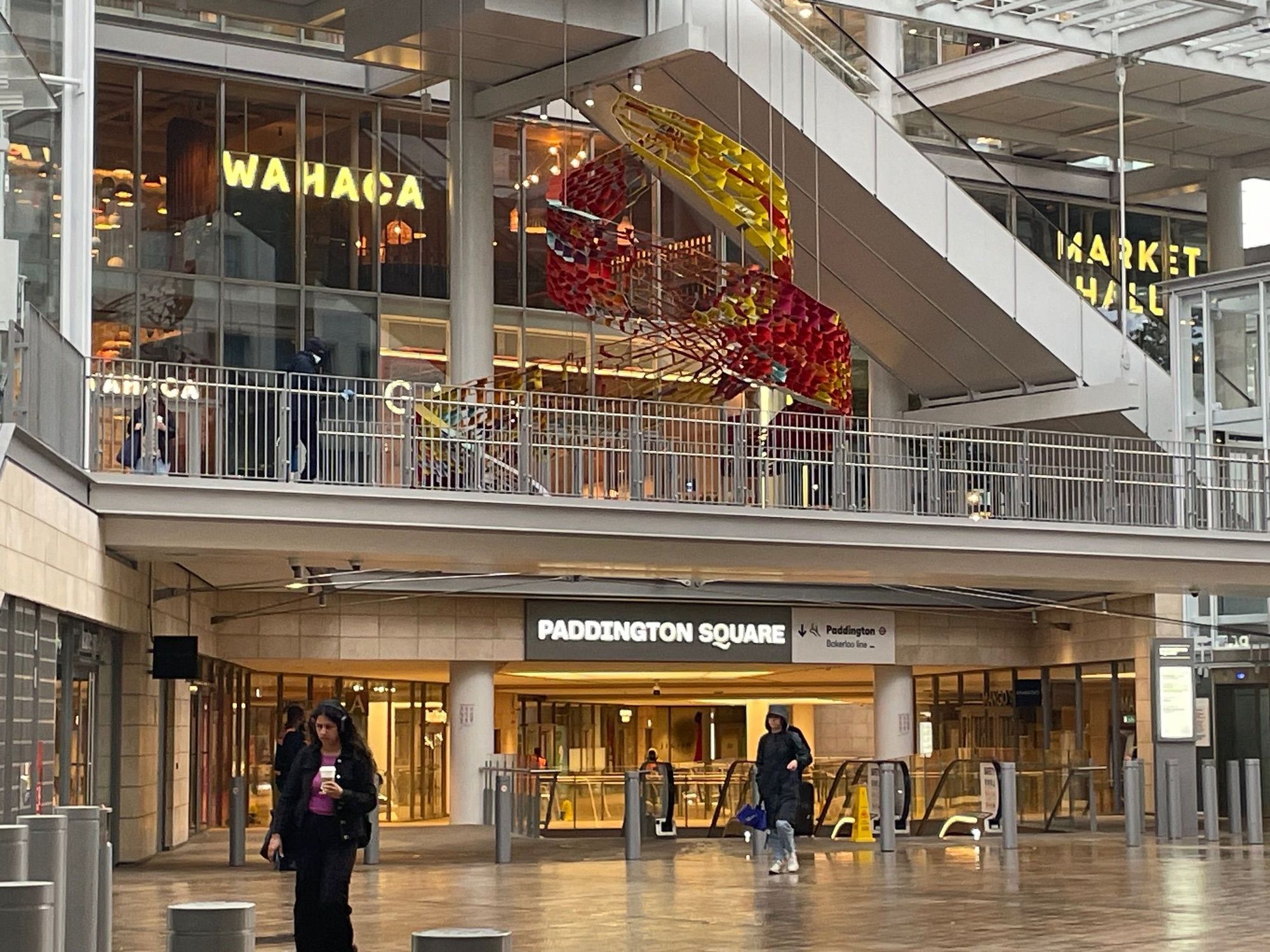 Giant food court outside of the station. I get a kick out of this given my love of Mexico, the restaurant you can see is called Wahaca, which specializes in food from Oaxaca. How phonetic of them.