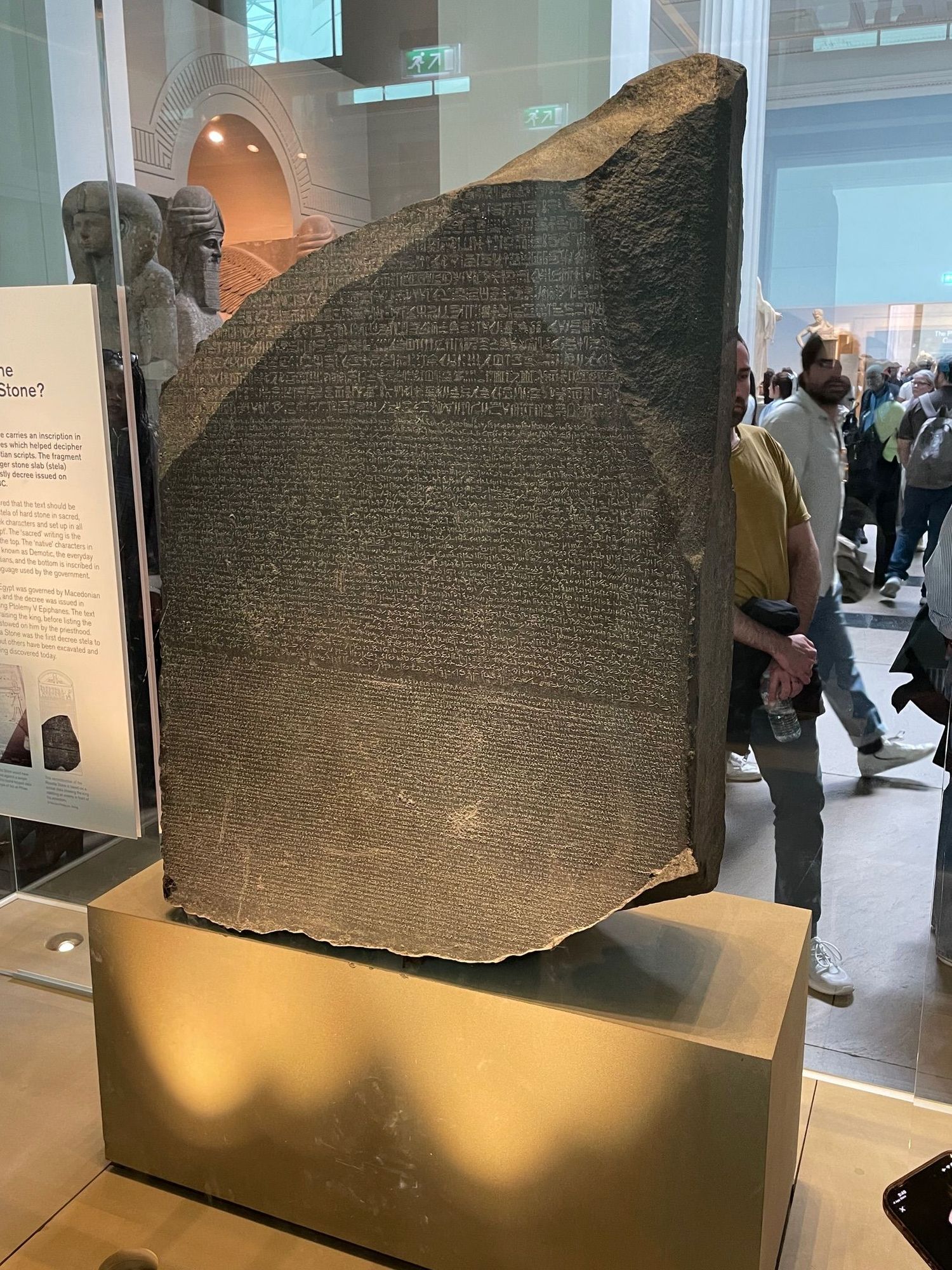 The Rosetta Stone, apparently discovered by Rosetta and allowed us to transcribe heiroglyphs.