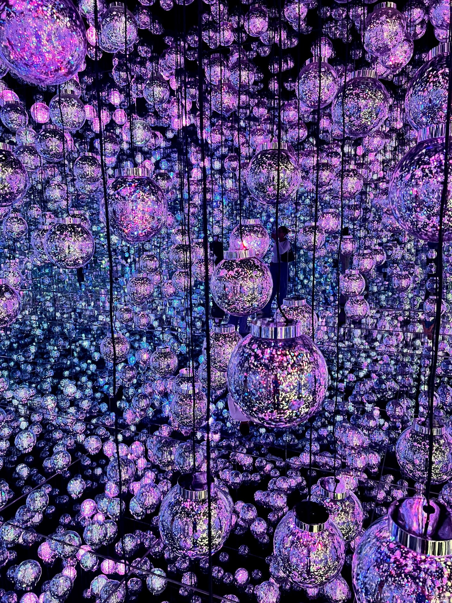 The "bubbles" will change color and pattern as you move your body and hands around them.