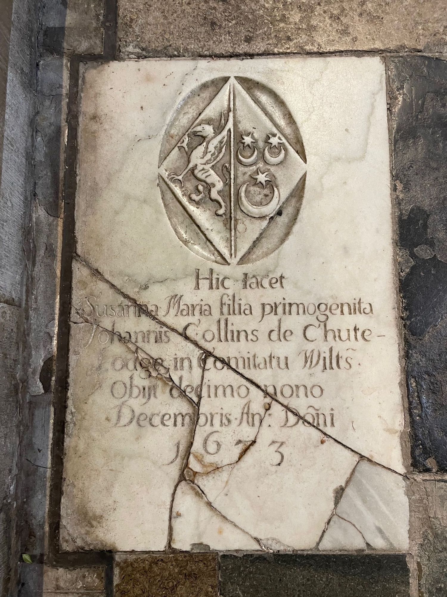 All around the Cathedral are floor plaques. Susanna here died in 1673, because of the water table here, there aren't any remains in the floor, the are for commemoration.