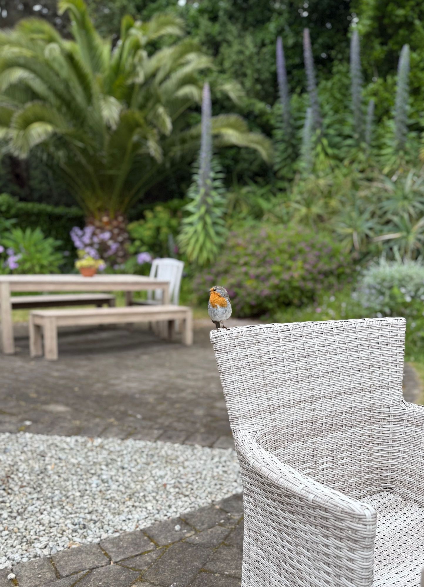 A bird joined me for teatime.