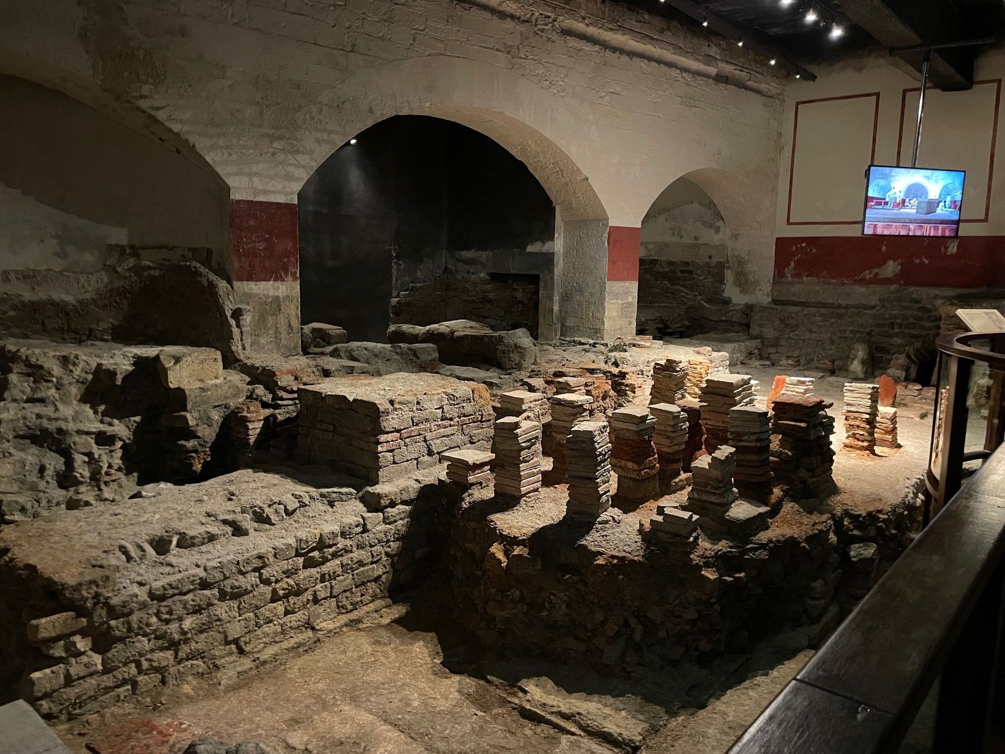 This is in the East Baths. There would have been heated water surrounding these pillored tiles and a fire heating up the water creating a steam room for the ladies.