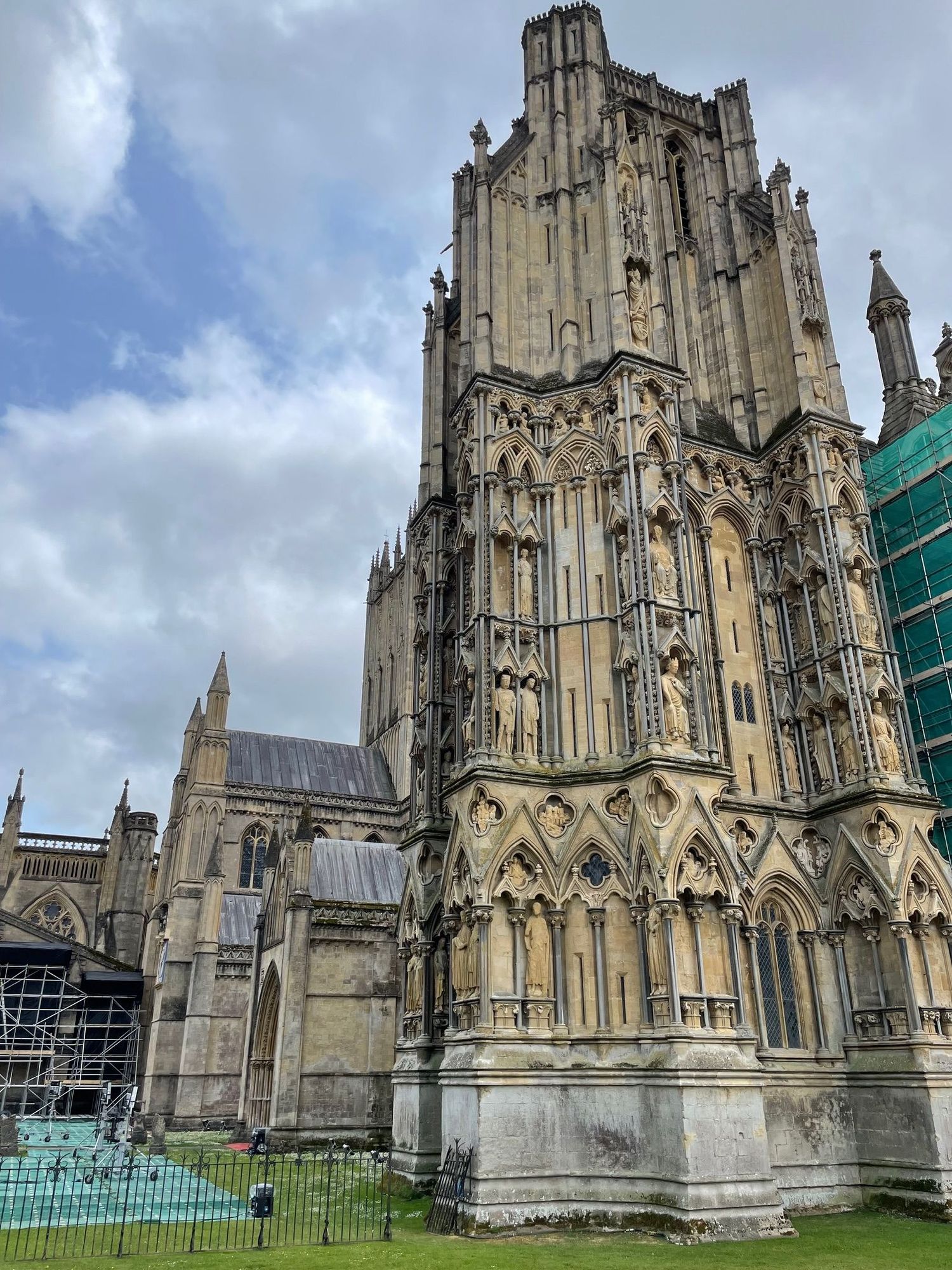 Wells Cathedral with scaffolding on the right.