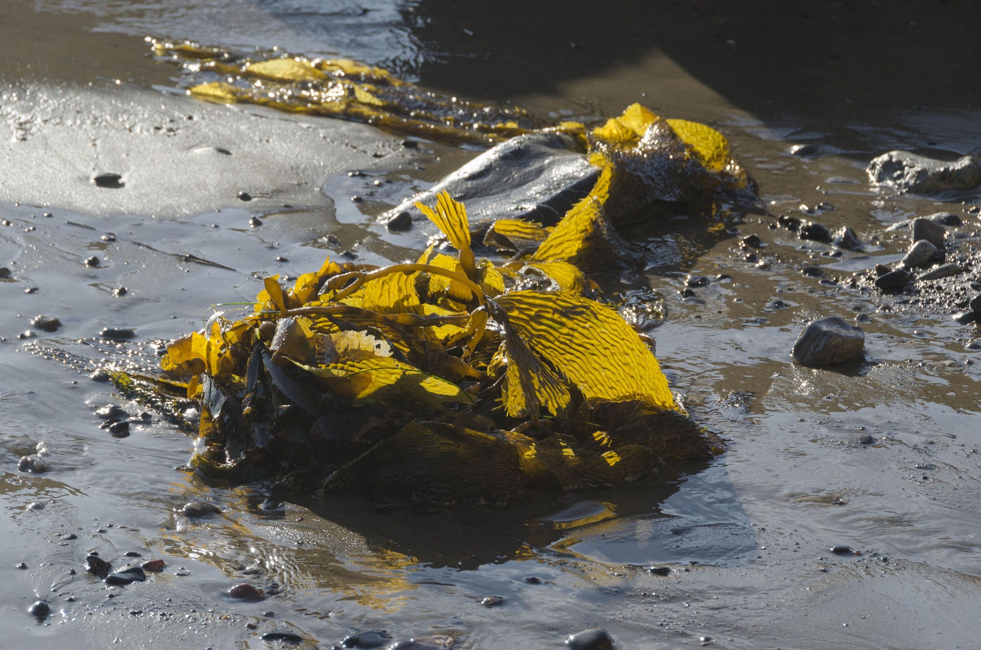 Edible kelp, algae, seagrass and seaweed can be bought in town. A public poster nearby described in detail 'Beach Wrack', the areas of waterline and water table that involve saturated sand, damp sand and dry sand.
