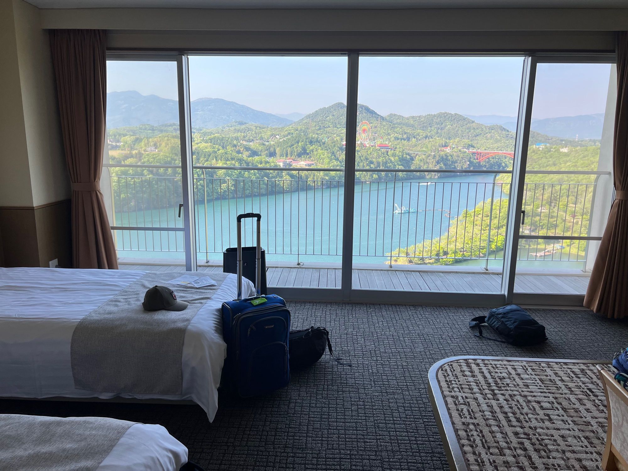 View of the Kiso River from our room at Enakyo Onsen Hotel. Excuse the messiness.