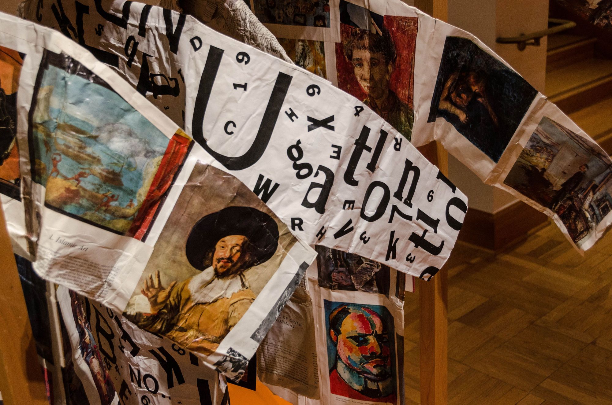 Shout-out to friendly museum staffer Joshua. He greeted visitors in a bespoke suit unlike most others, doing so at a desk right below a spinning gold Egyptian Pharoah bust. Also, see dcd's TR photos of some paintings including the Monet 'Villa B'. See also: historic Indian/Nepali sculpture and also modern photography. Above: the clothing created from pages of art books.