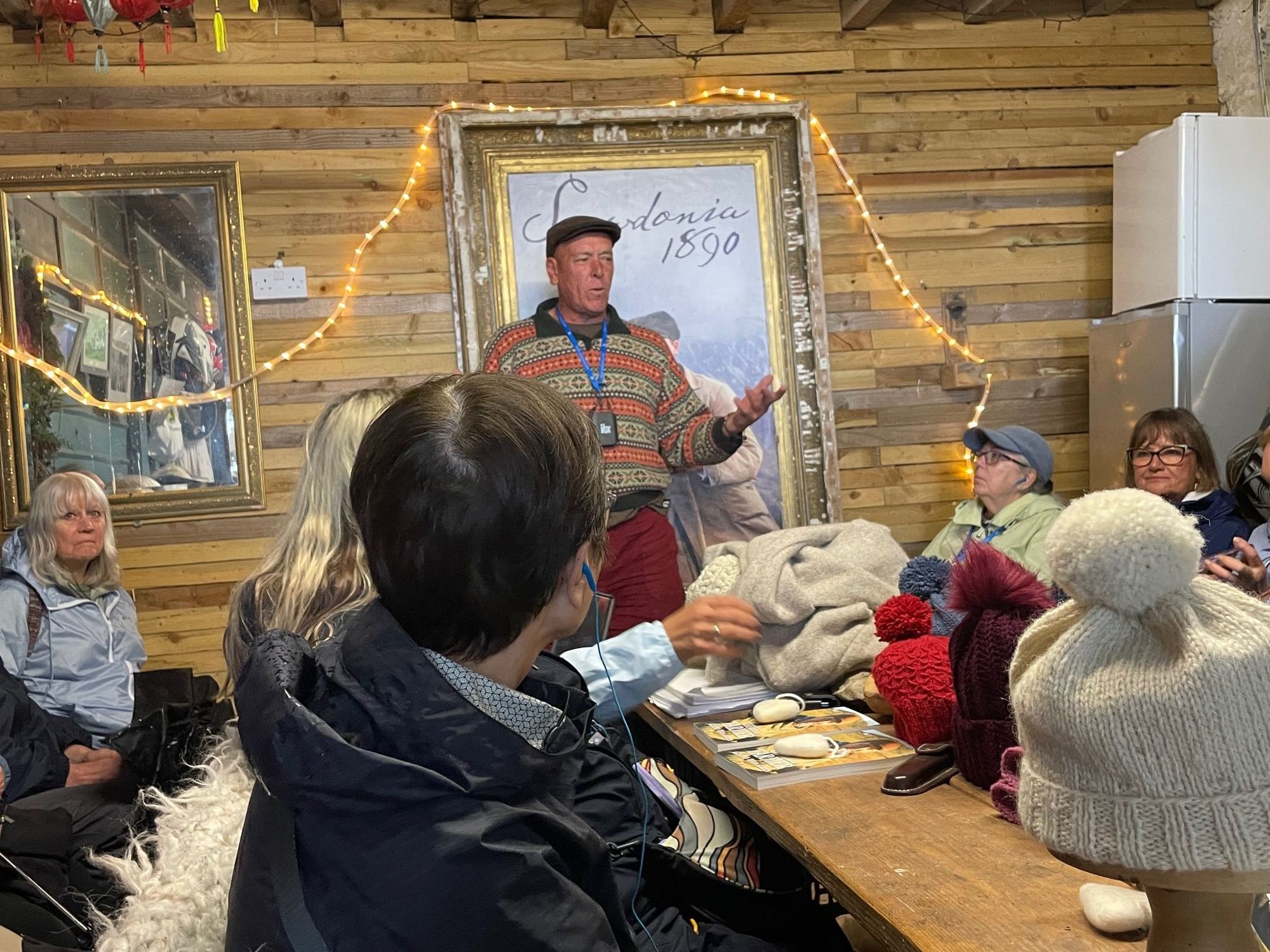 Giving us a lesson about sheep farming. I don't think you can see it well but there is a big poster for Snowdonia 1890, which was a show he was on