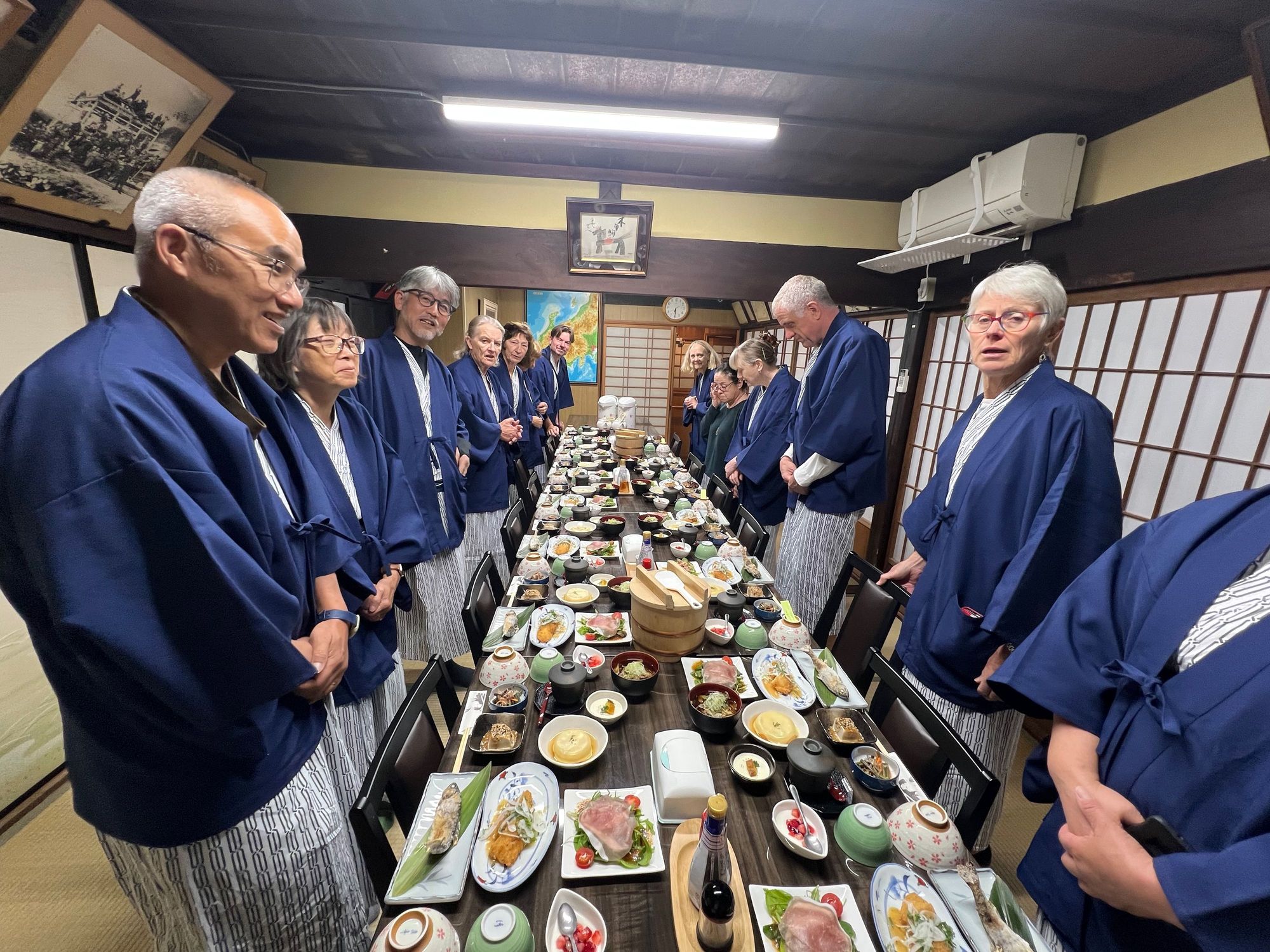 Dressed in our yukatas as we sit down to another elaborate kaiseki meal.