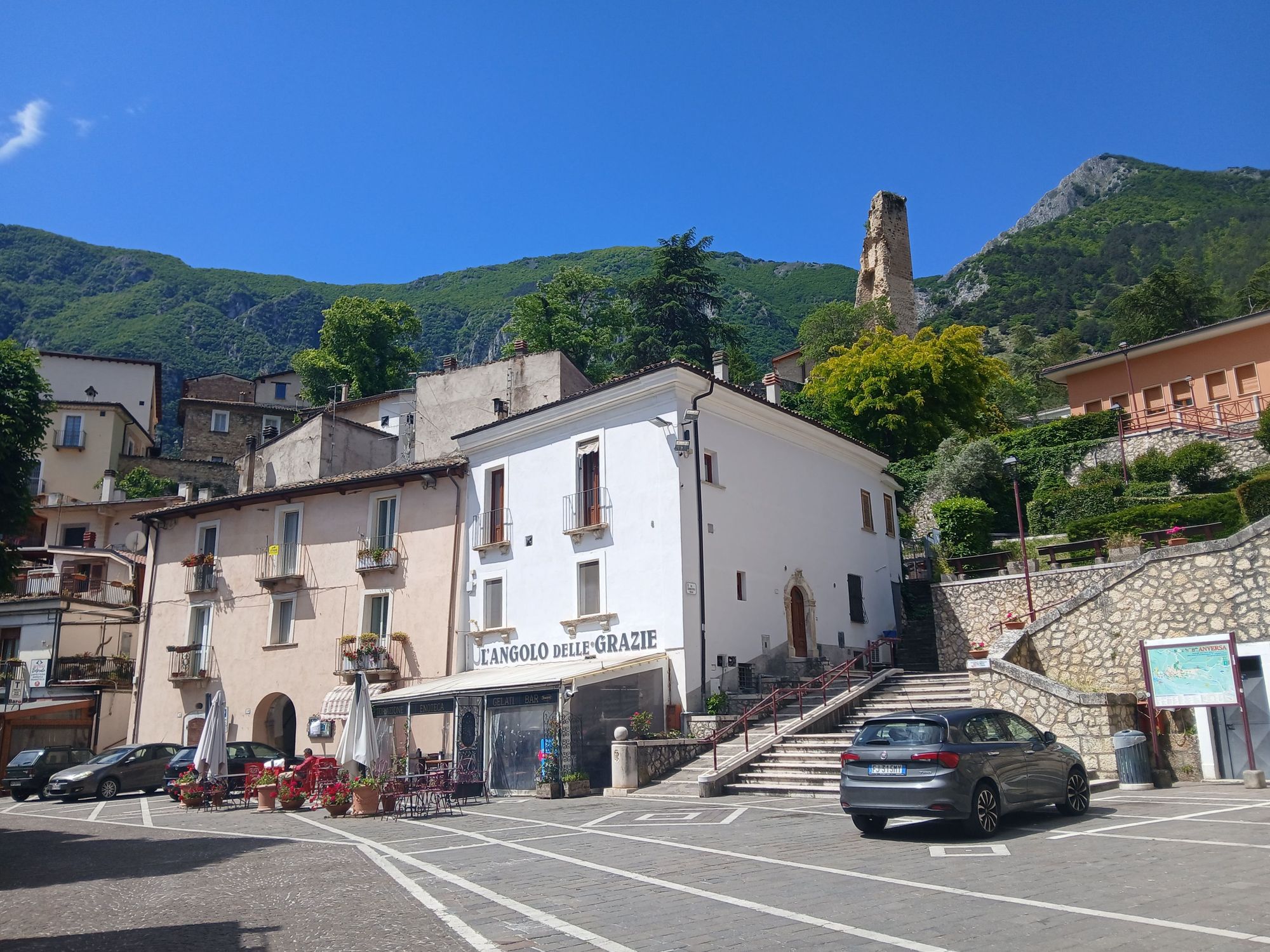 At the main square, by the cafes