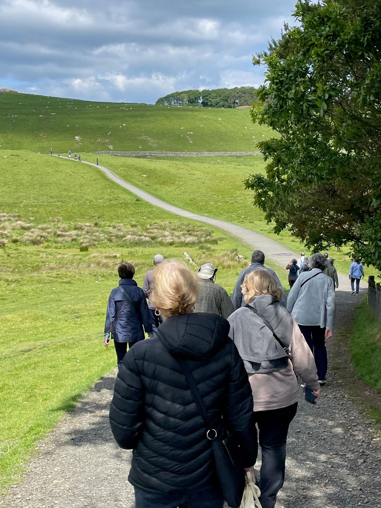 Us, starting up the hill. We are headed to the trees in the top middle of the picture. Sure glad I'm not a Roman in armour.