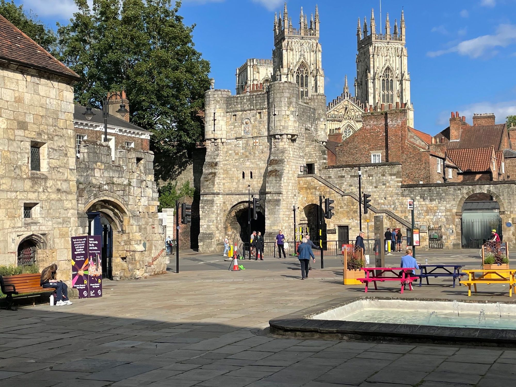 Walking from Exhibition Square to Bootham Bar. A gate is called a Bar and a road is called a Gate. Hey I didn't make this up, blame the Vikings.