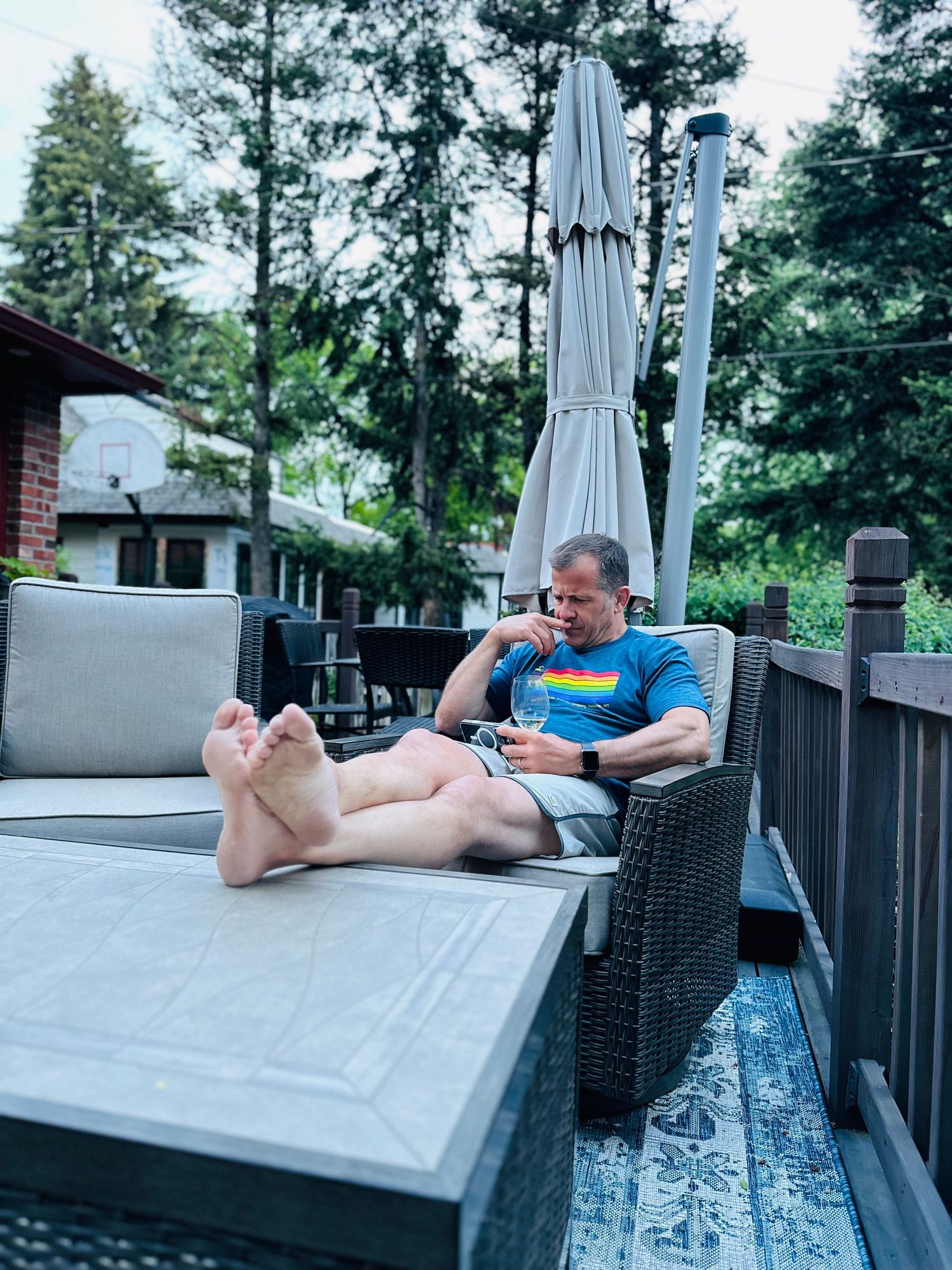 Happy Father’s Day tomorrow. Nate watching the last basketball game on his phone.