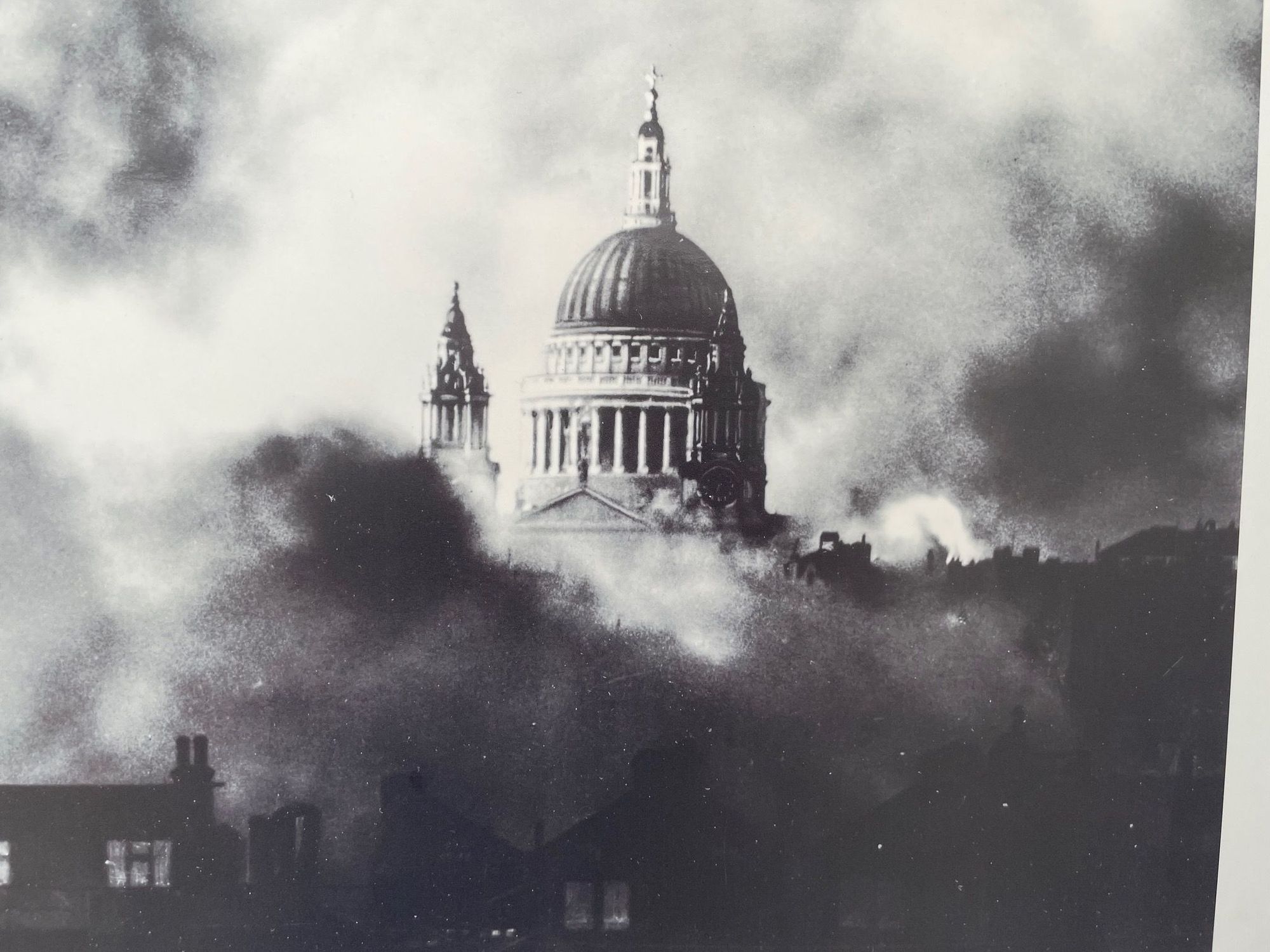Britain is celebrating VE day and there is an outside display about the volunteers that helped save the church during the Blitz, this is a famous photo of St. Paul's standing!