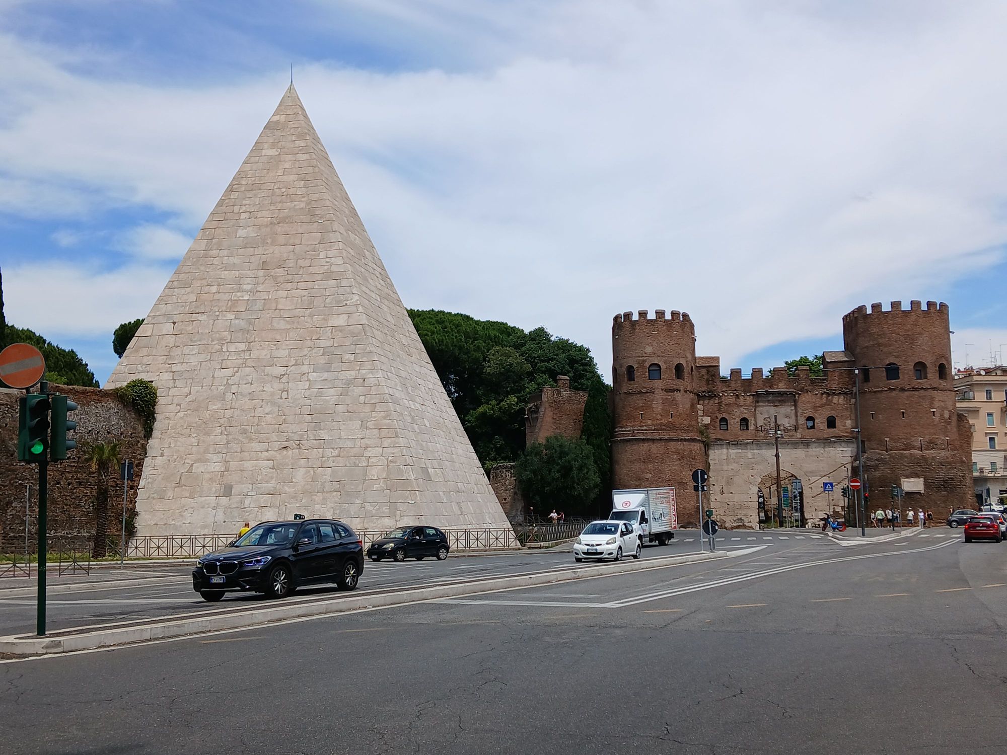 Arriving in Testaccio, view of the pyramid