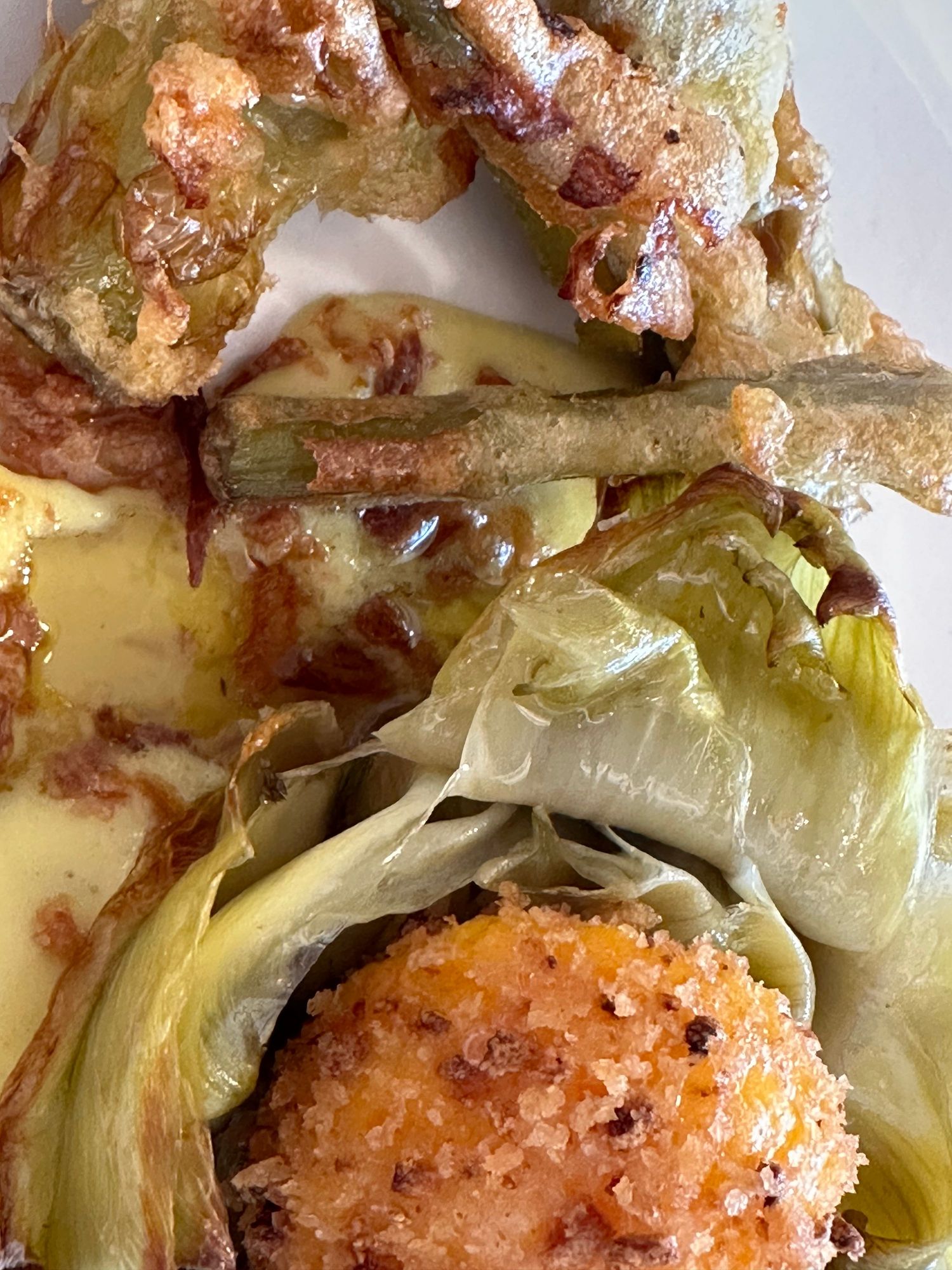 Closeup of the artichoke dish; why are there so few great artichoke dishes offered at restaurants in New York City? They are either those huge Globe artichokes, stuffed with bread crumbs, or thinly sliced, fried, and salted.