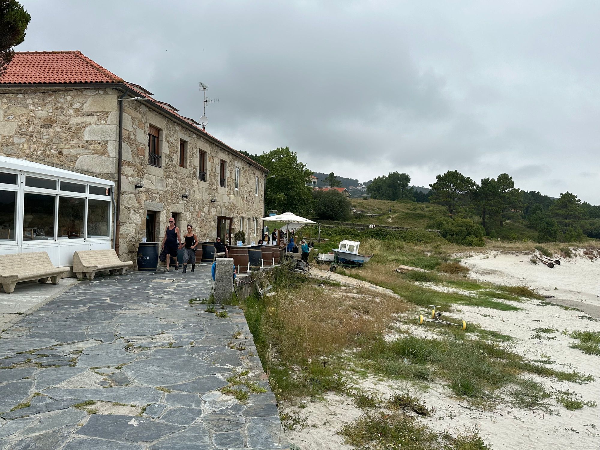Facade of the restaurant, a former fish salting factory, has two "suns" in the Repsol Guide to Iberian gastronomy (as does D'Berto, where we had two dinners in O"Grove last week)