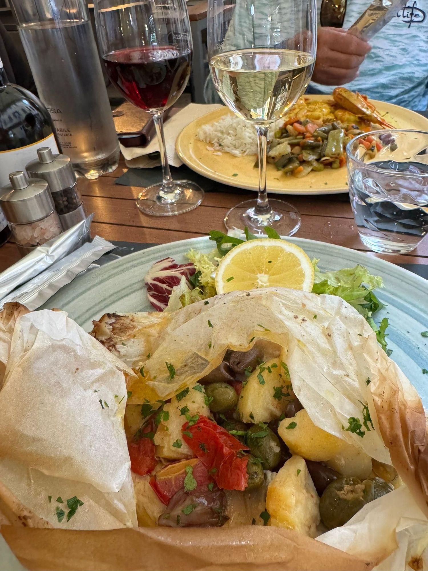 My baked sea bass and vegetables at Muro Frari