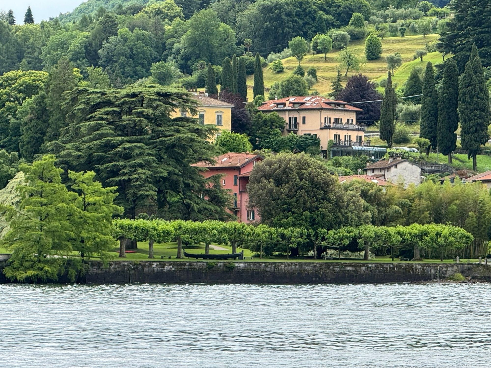 Lake Como and view of the lush countryside and colorful houses
