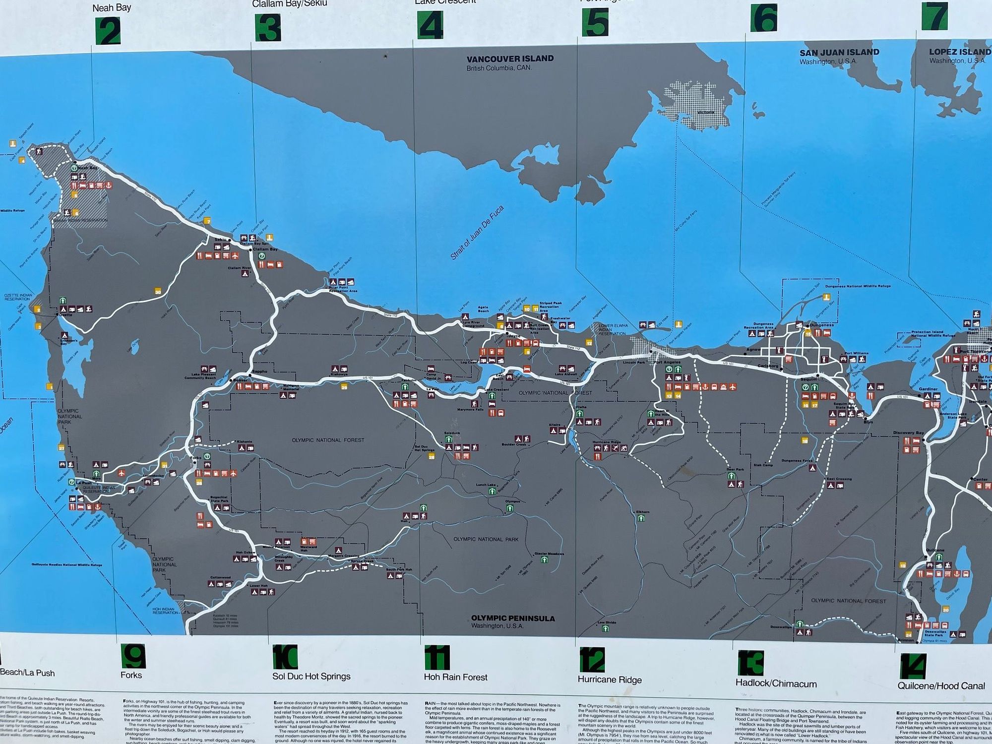 Map of the top of the Olympic Peninsula. We will visited every part by the end of this trip. After a week in Port Townsend, we are headed to Cape Flattery which is at the furthest Northwest corner.