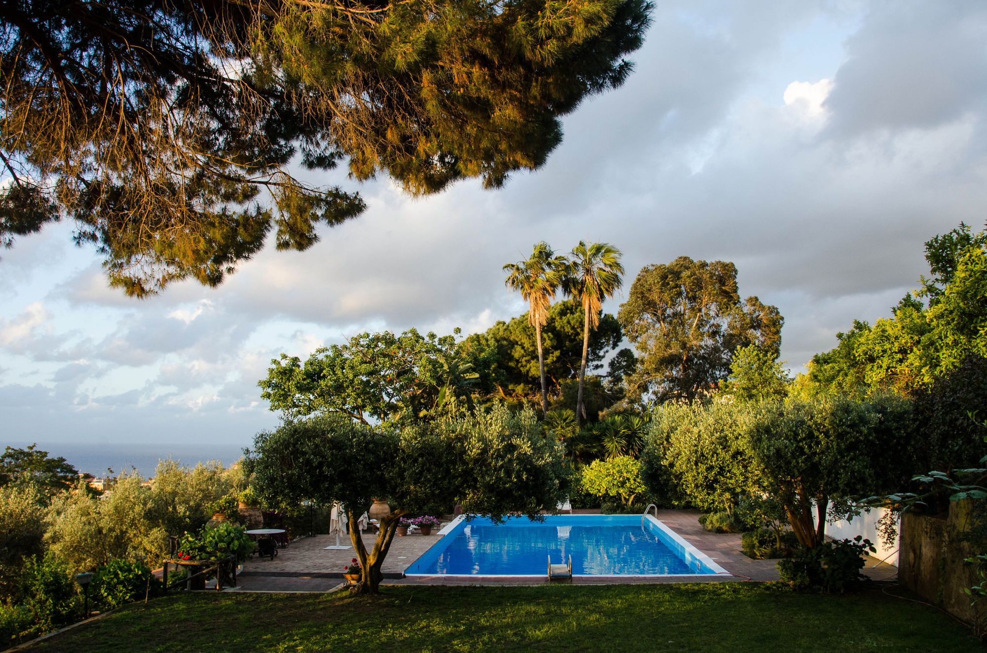 The view from one of the bedrooms. Overhanging is one of the several MASSIVE old cedar trees, a fairly unusual sight in Calabria. More common is the variety of cacti plus pine, both of which proliferate throughout villa Bragho.