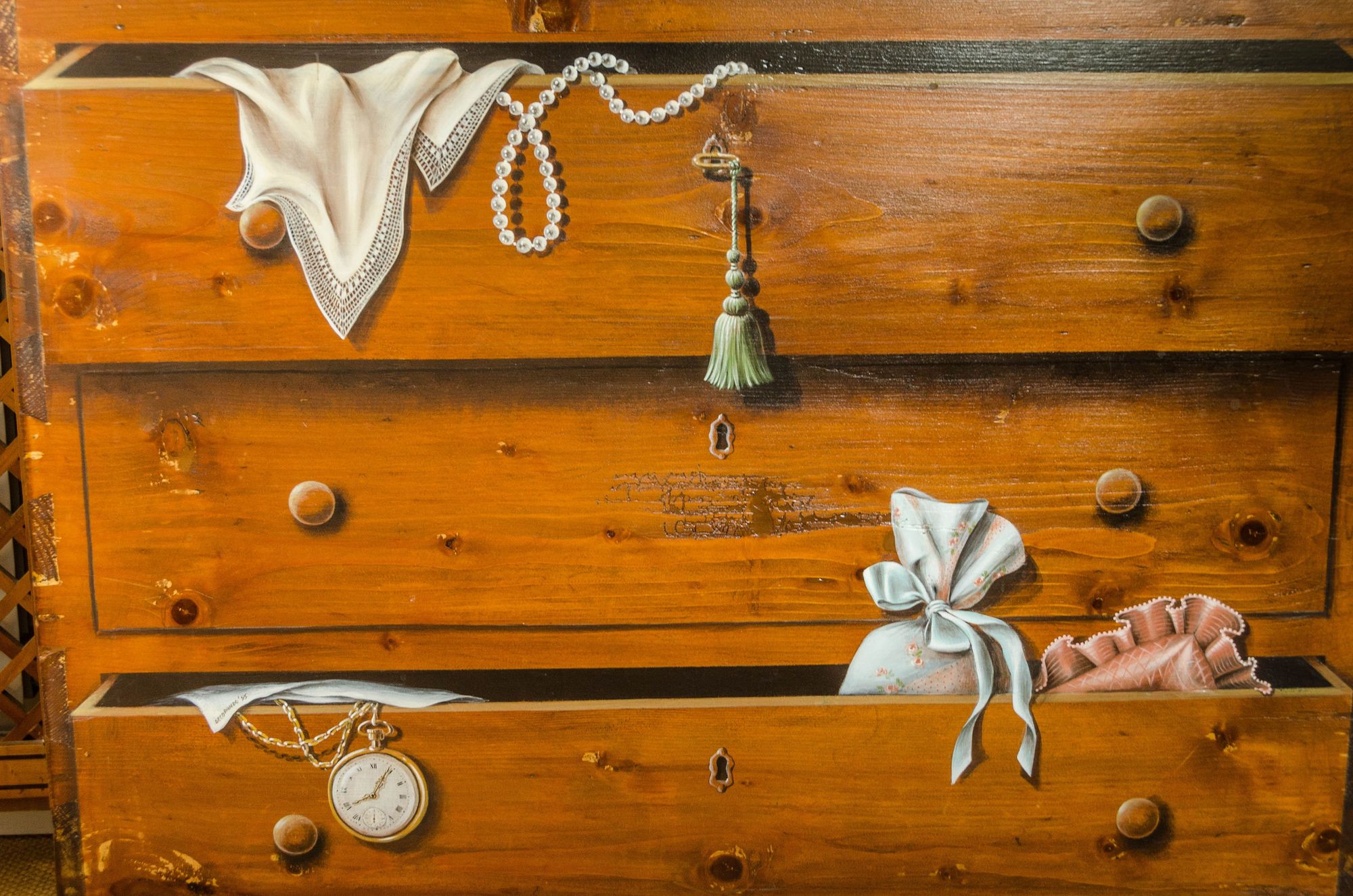 Clever hand-painted facade of one drawer.