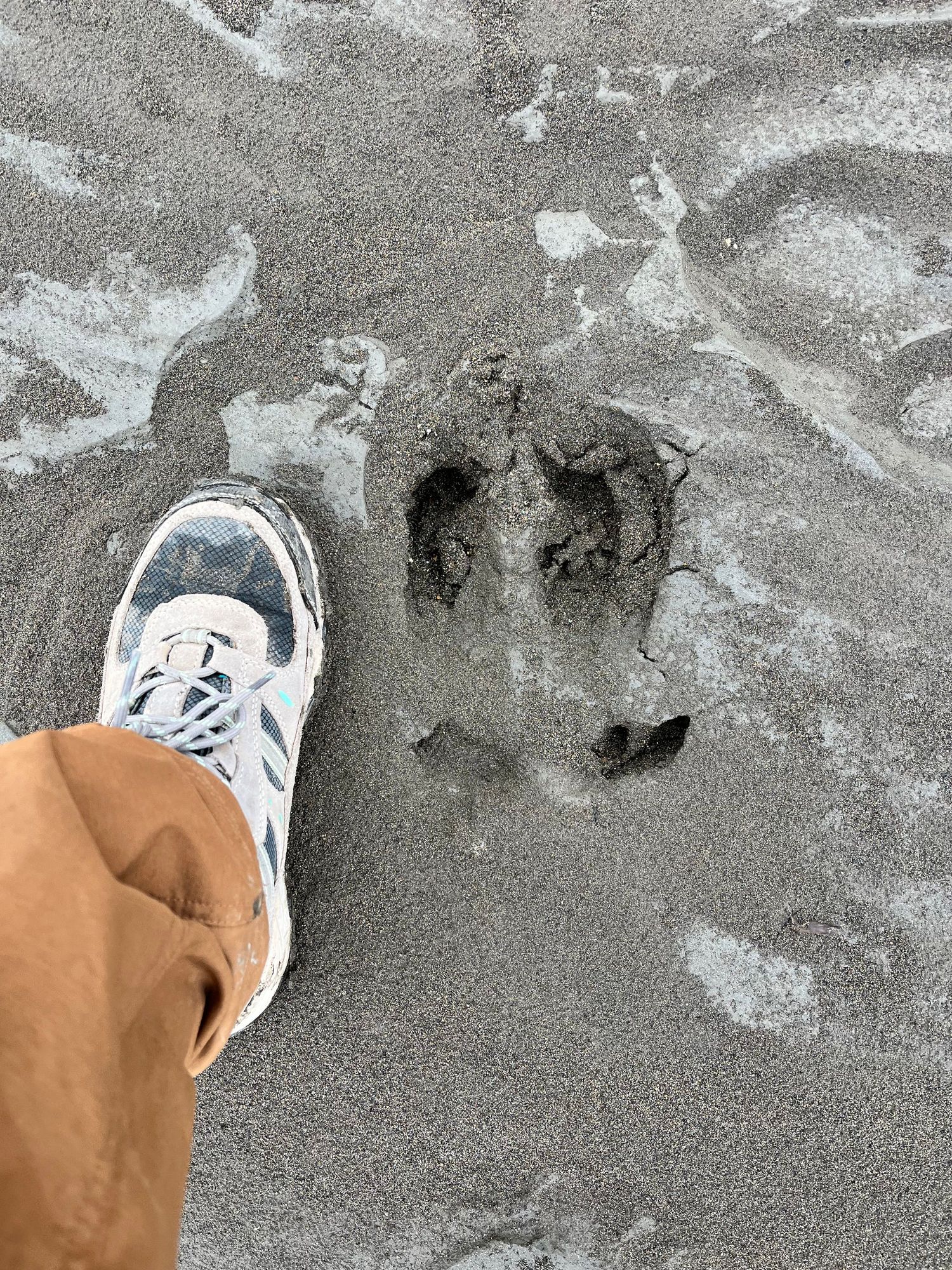 Caribou hoof print in the silt on the river bed