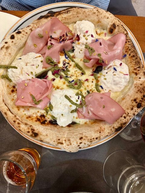 Mortadella, pistachio, cheesy goodness