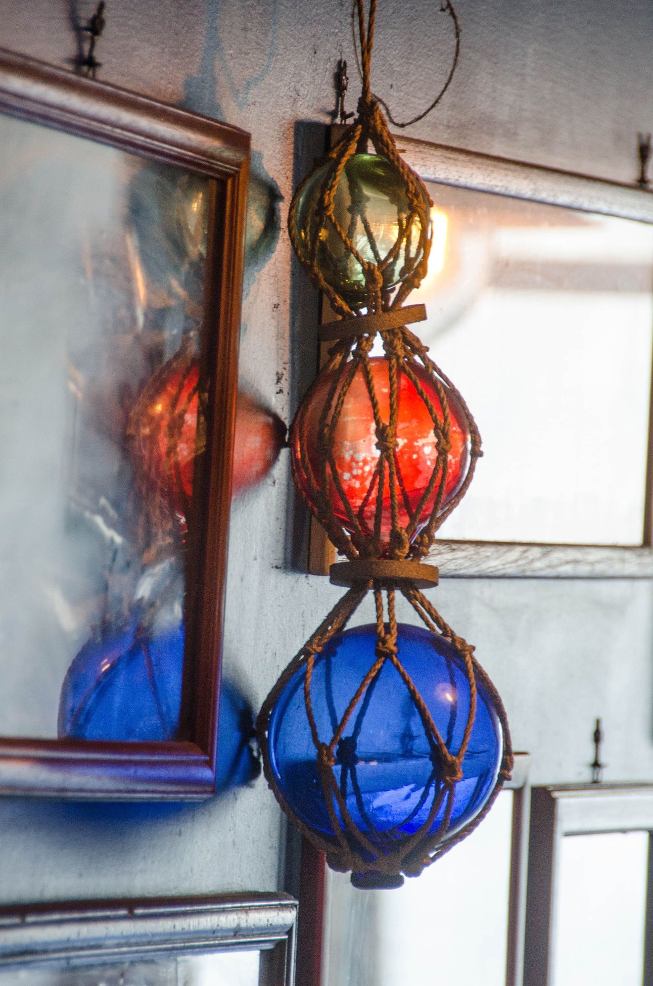 Fisherman's floats of the type used in Korea and Japan. Size, colour and shape denote the different usages.