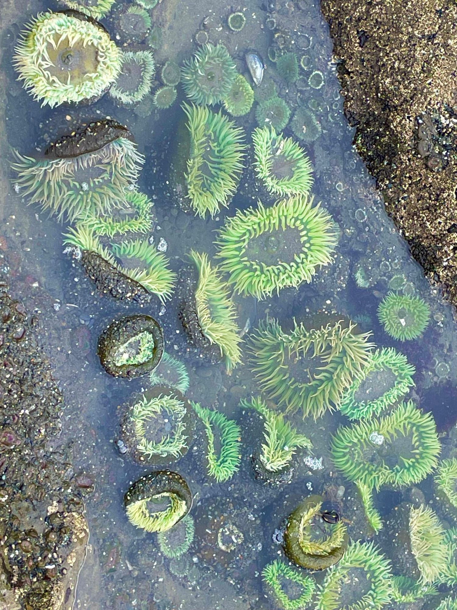 Sea anemones everywhere. They need water to open up that's why it's so important to see them when the tide is coming in.