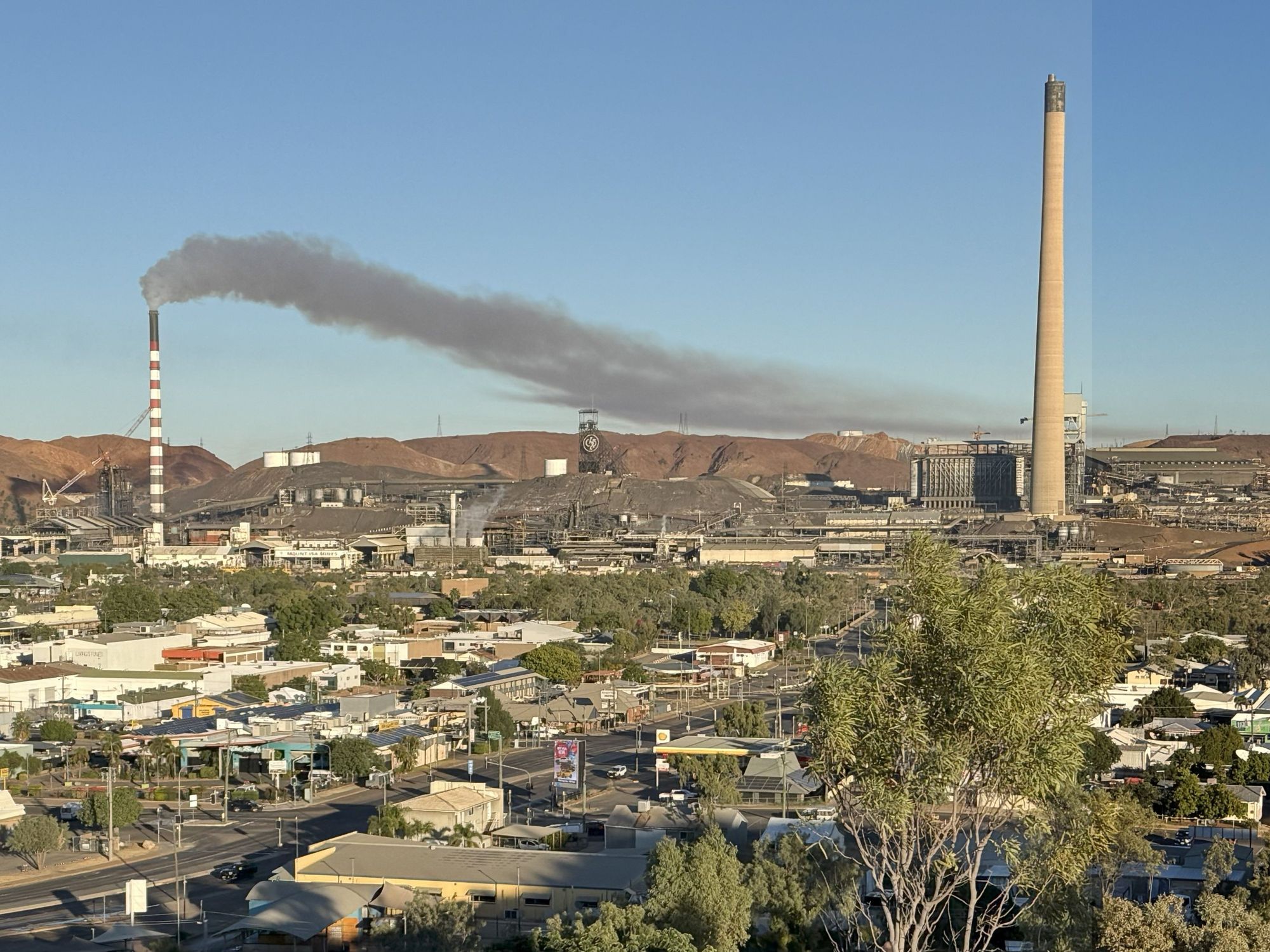 Mt Isa from the Mt Isa Lookout. Copper and lead smelter stacks left and right.