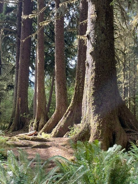Ok, so this is interesting. These five trees all grew out of a mother tree, probably hundreds of years ago. The mother tree has completely wasted away but the "off spring" are standing tall and in line!