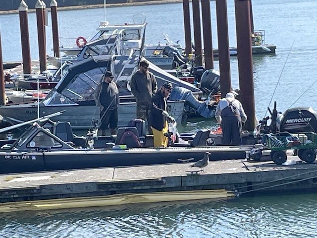 Salmon fishing is huge here and many people book a fishing trip. In this case, the owner of the boat was filleting and bagging the salmon right on his boat.