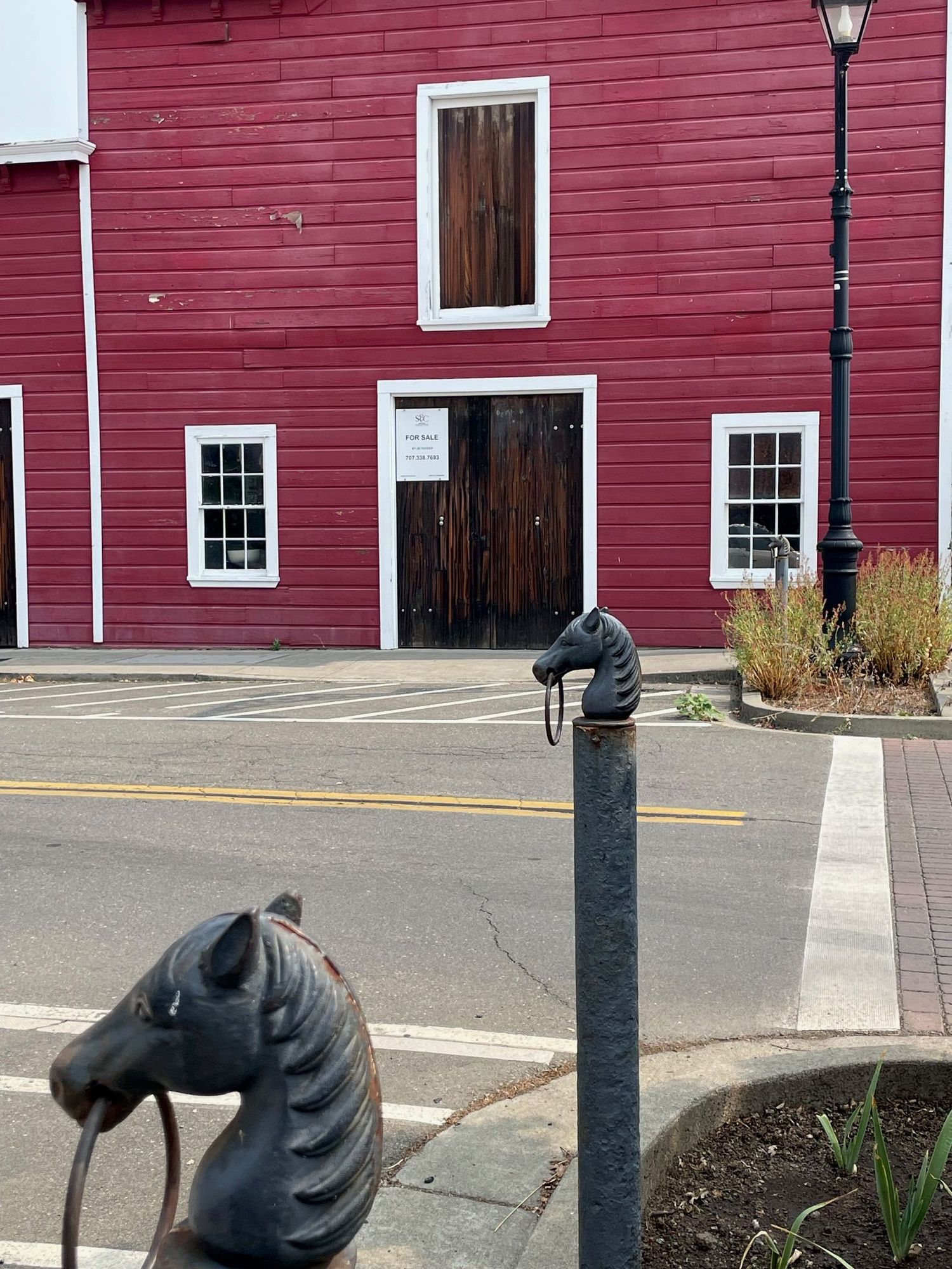 Another shot of the stables with horse head, horse places to tie up your horse.