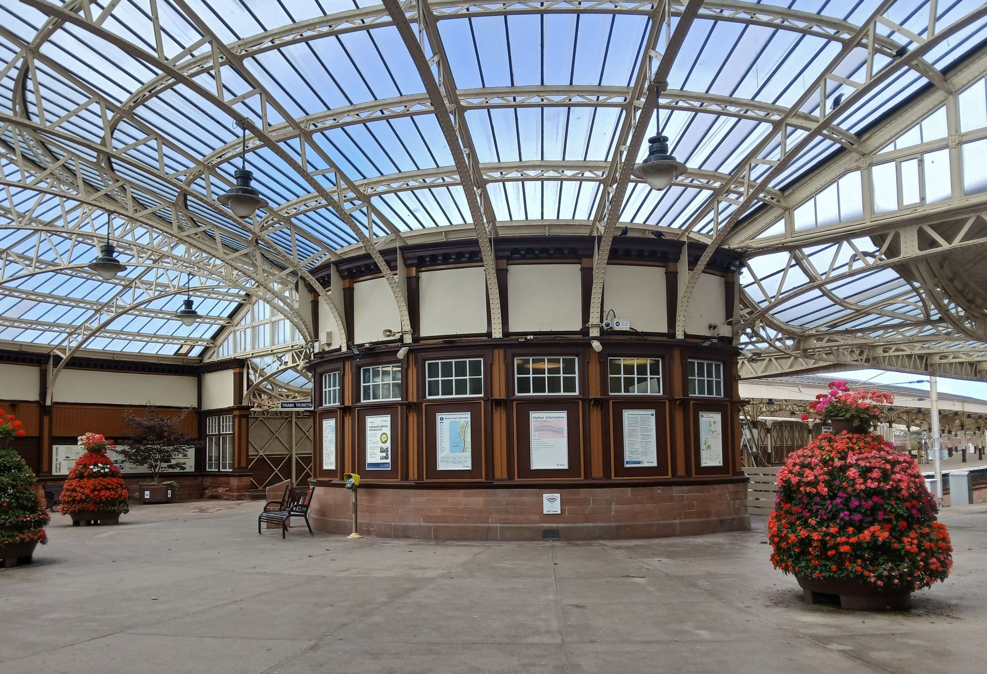 Appreciating the Victorian Wemyss Bay train station as we waited to board
