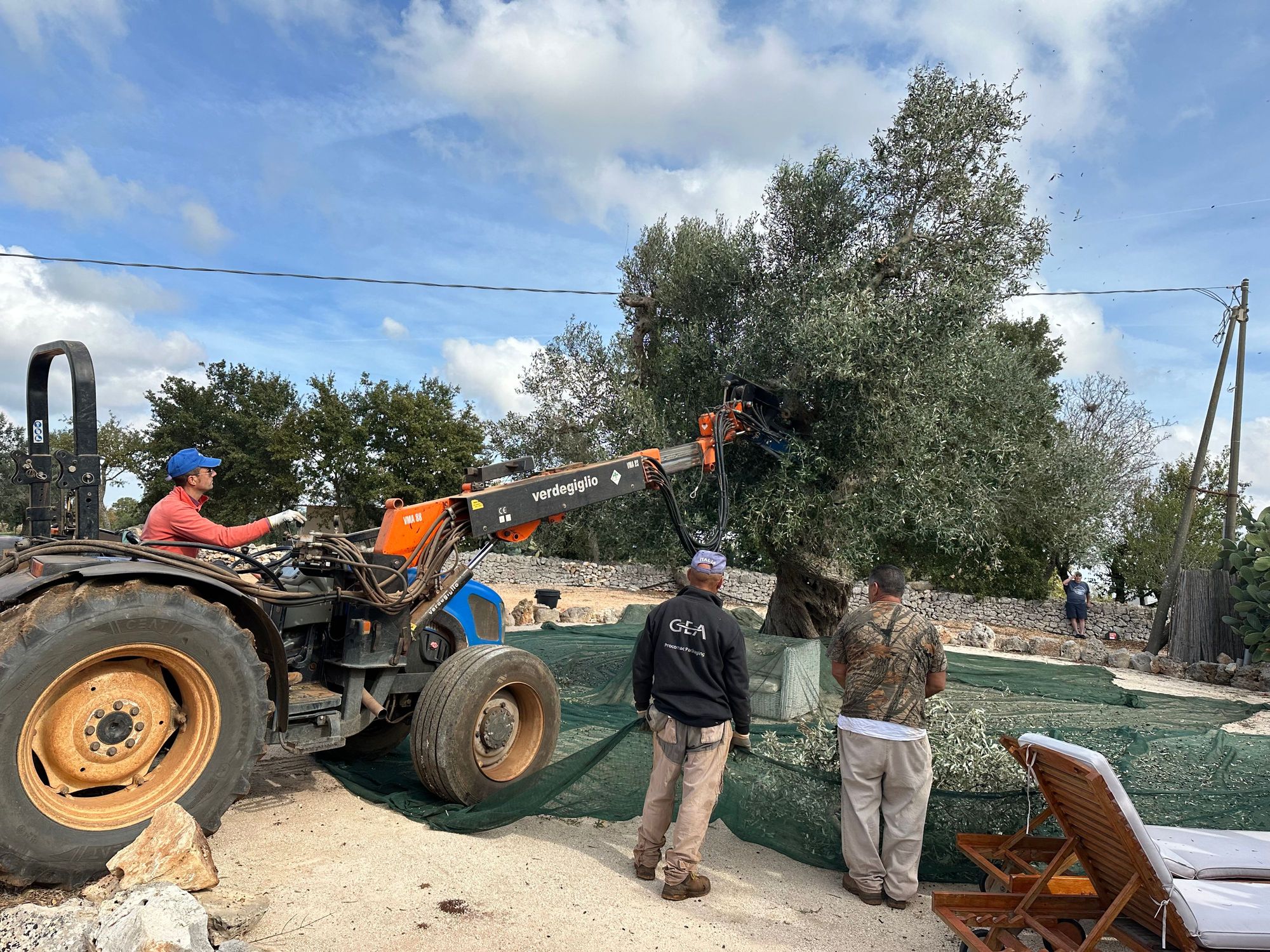 Shaking the ripe olives from the 300-year-old tree, the first tree of many they would harvest today