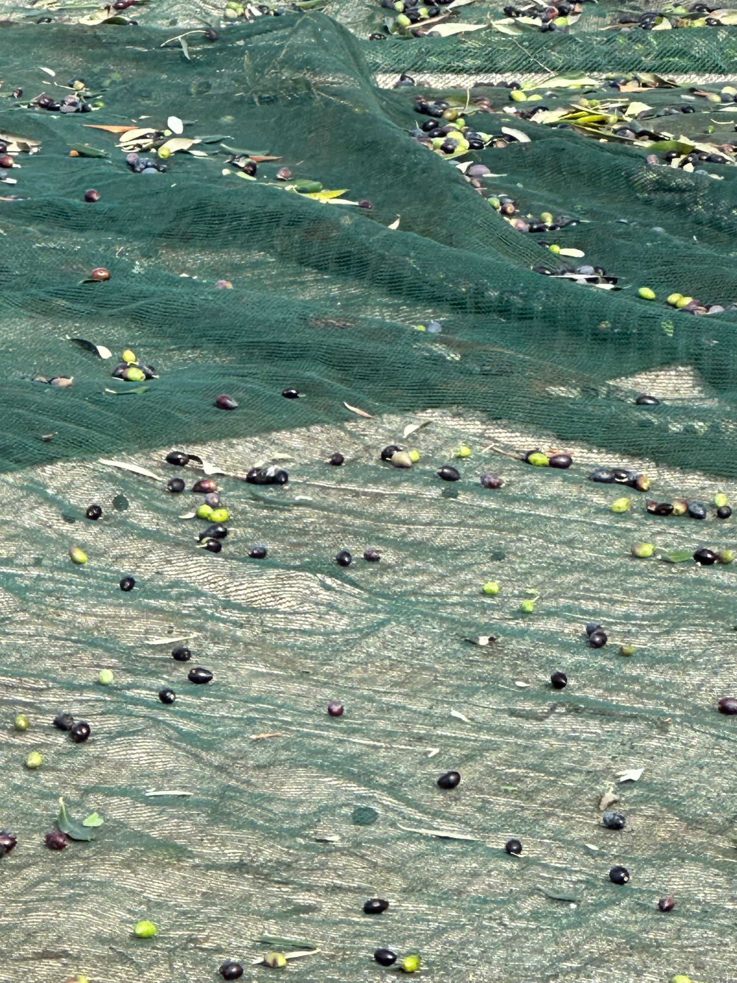 The olives and twigs and leaves on the ground