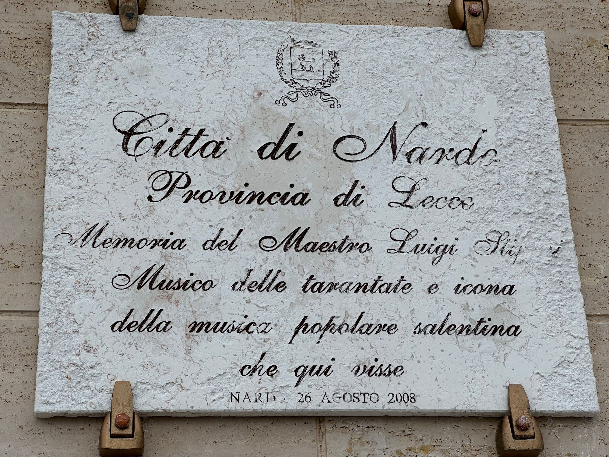 Plaque in the town at the former home of a Salentine tarantella musician