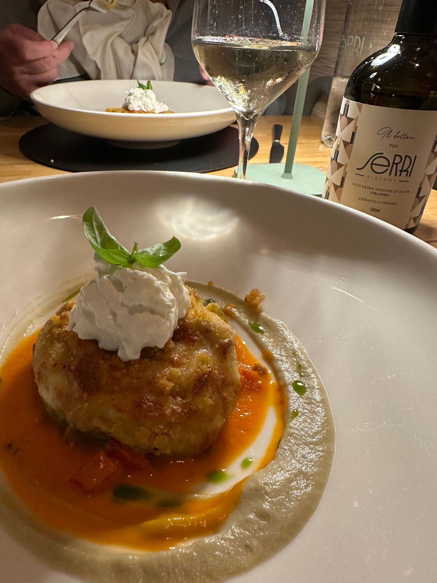 Astounding eggplant with stratciatella and a tomato puree at SERRI BISTROT