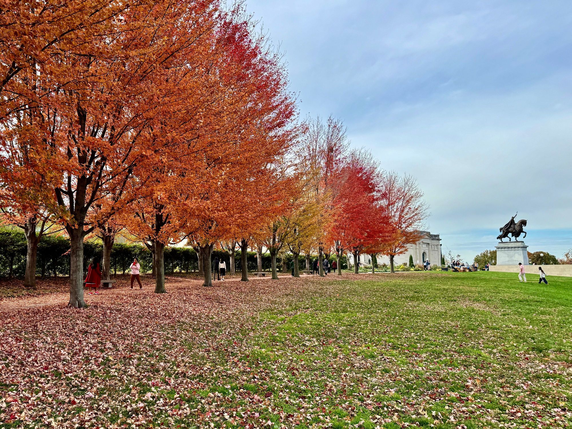 Line of trees in front of our Art Museum with King Louis IX on his horse (city named after him)