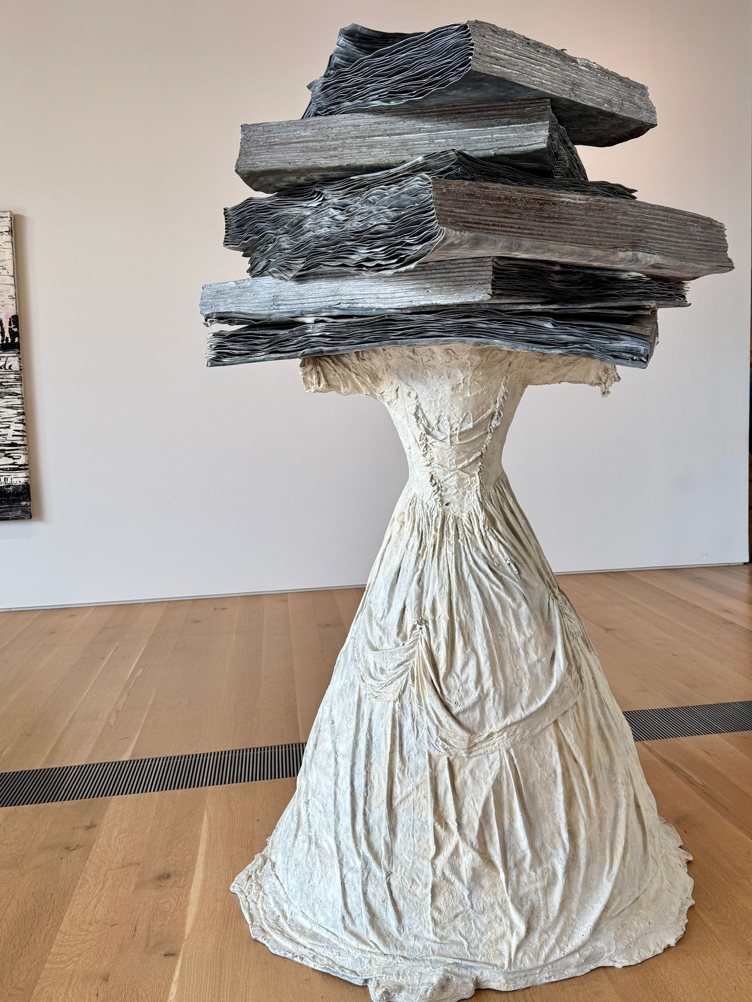 One room was devoted to wedding dresses. He replaced all the heads of the women, who were all well known in their day, with items representing them and their story. This is depicting a women on Lesbos and her love of learning and poetry about her sexuality. Those "book" weigh a ton, literally!