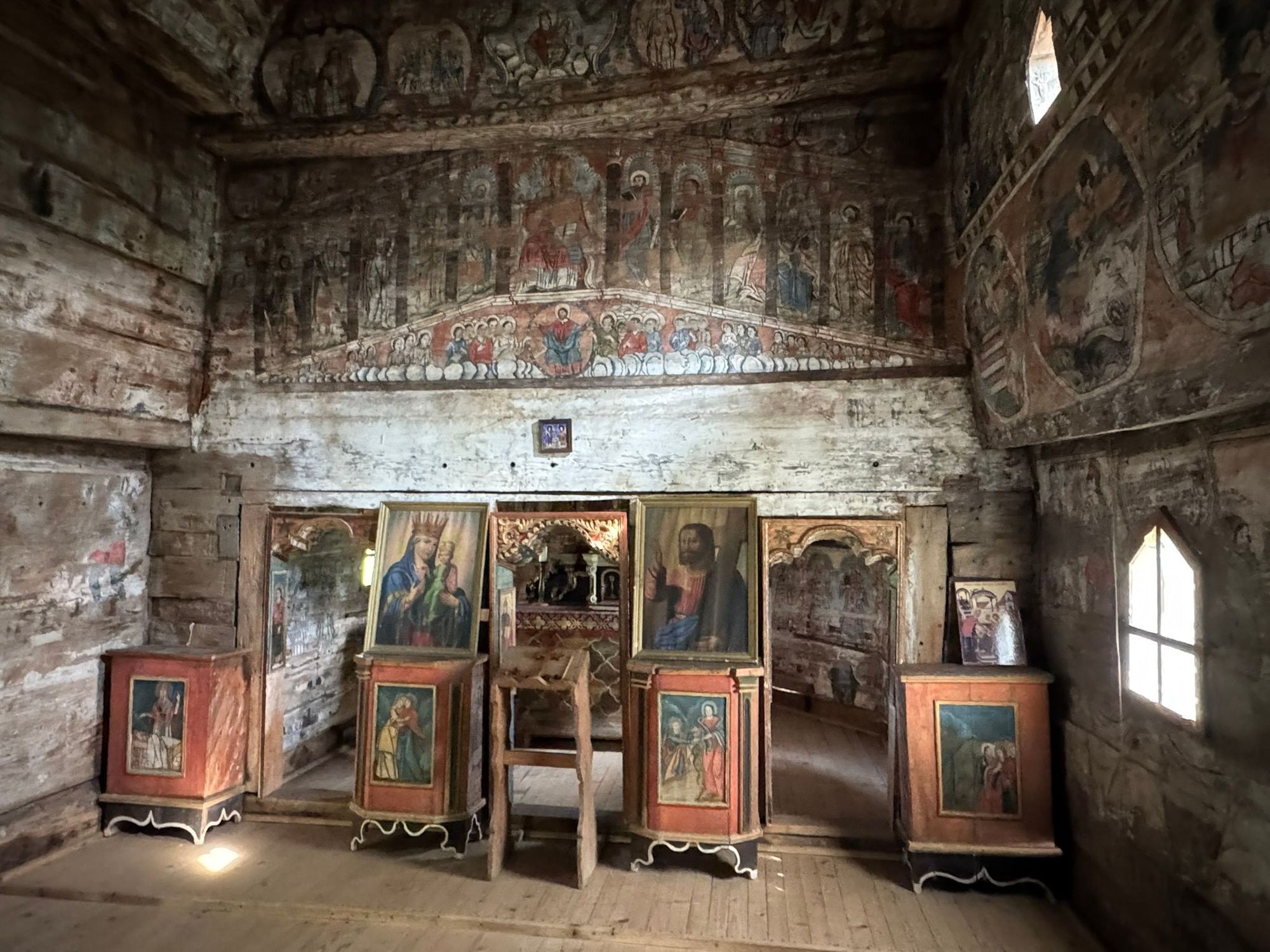 The interior of the church is filled with paintings